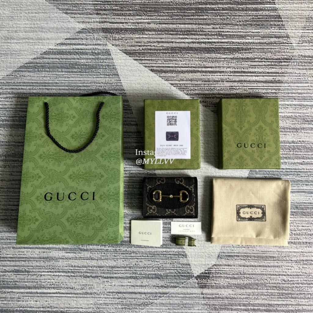 Top Quality Version:MYLLVV » Gucci Black And Ivory GG Denim Jacquard Horsebit 1955 Card Case Wallet 621887