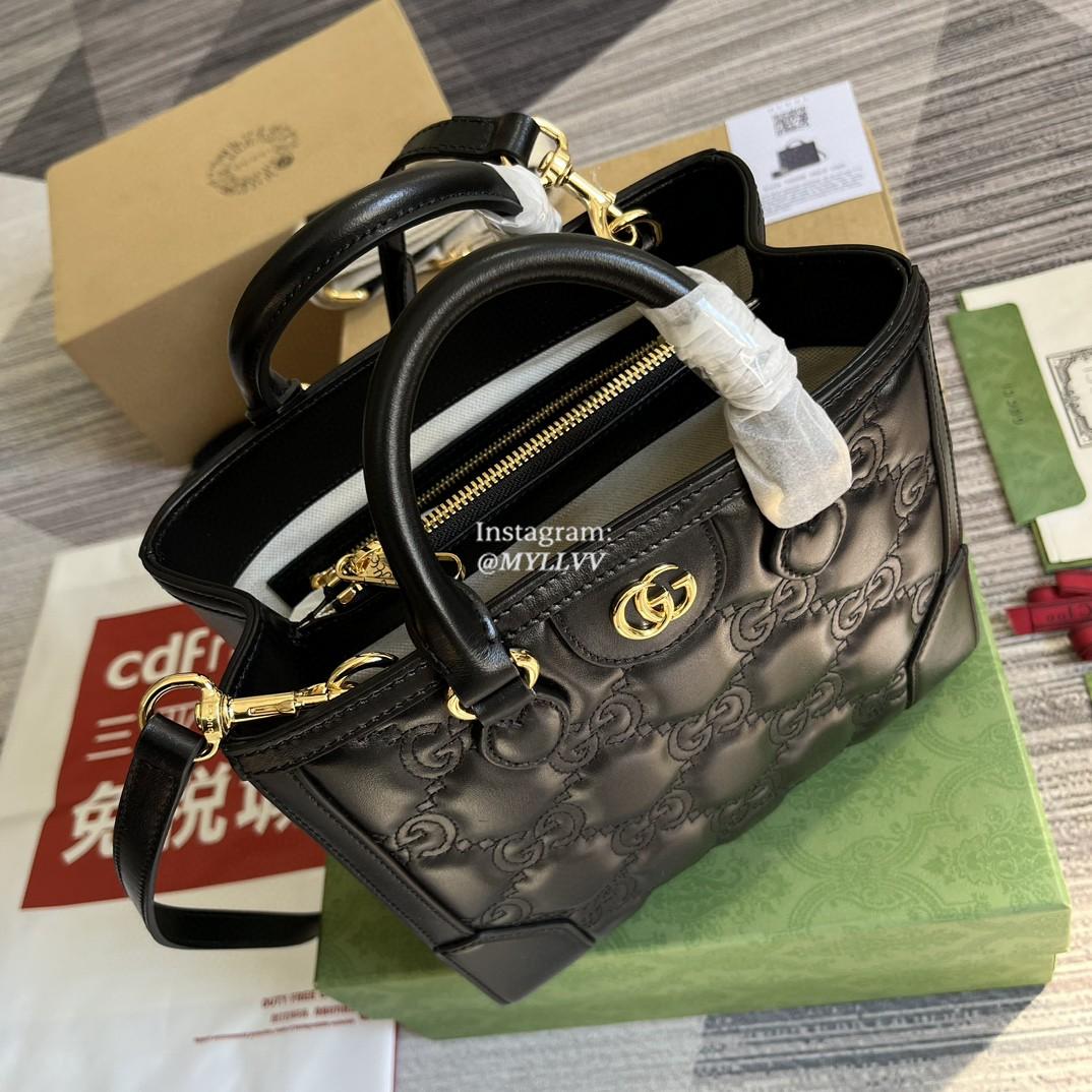 Top Quality Version:MYLLVV » Gucci Black GG Matelassé Leather GG Matelassé Mini Top Handle Bag 728309