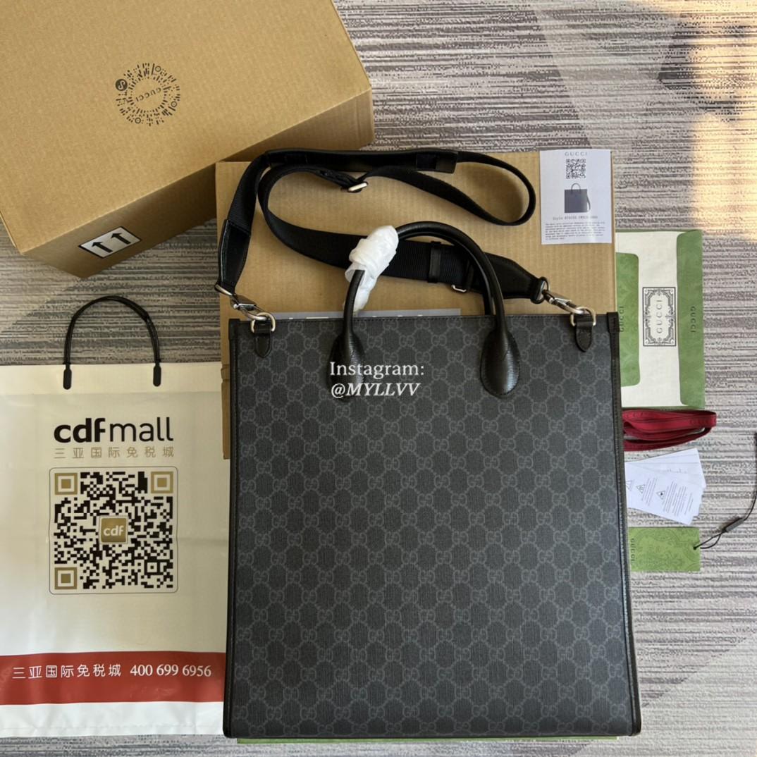 Top Quality Version:MYLLVV » Gucci Black GG Supreme Canvas Medium Tote Bag With Interlocking G 674155