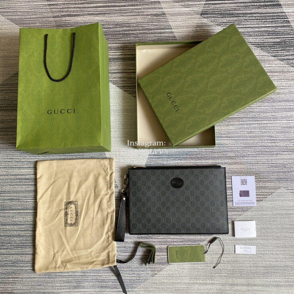 Top Quality Version:MYLLVV » Gucci Black GG Supreme Canvas Pouch With Interlocking G 672953