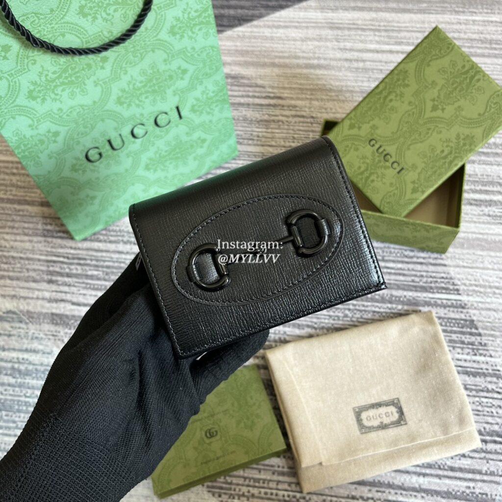 Top Quality Version:MYLLVV » Gucci Black Leather Horsebit 1955 Card Case Wallet 621887