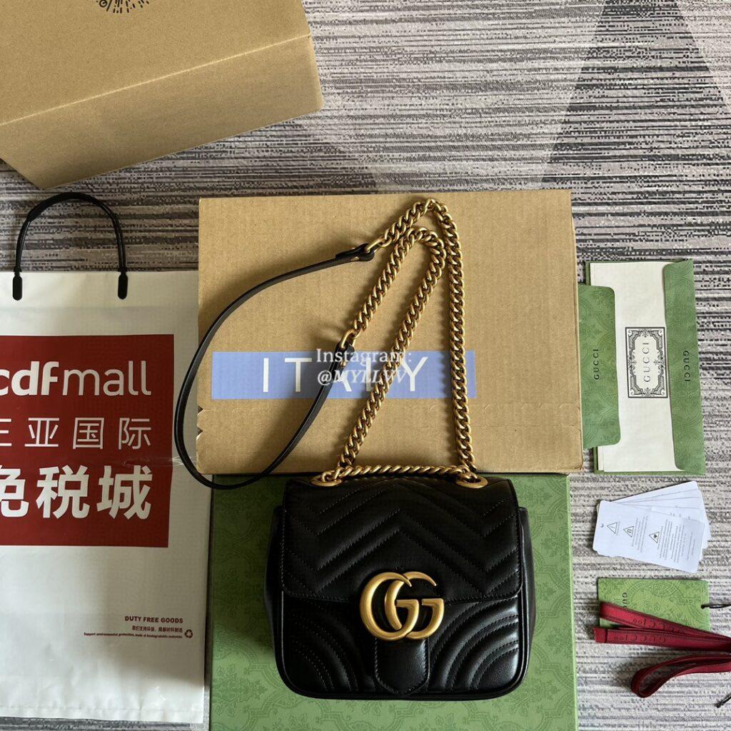 Top Quality Version:MYLLVV » Gucci Black Matelassé Chevron Leather GG Marmont Mini Shoulder Bag 739682