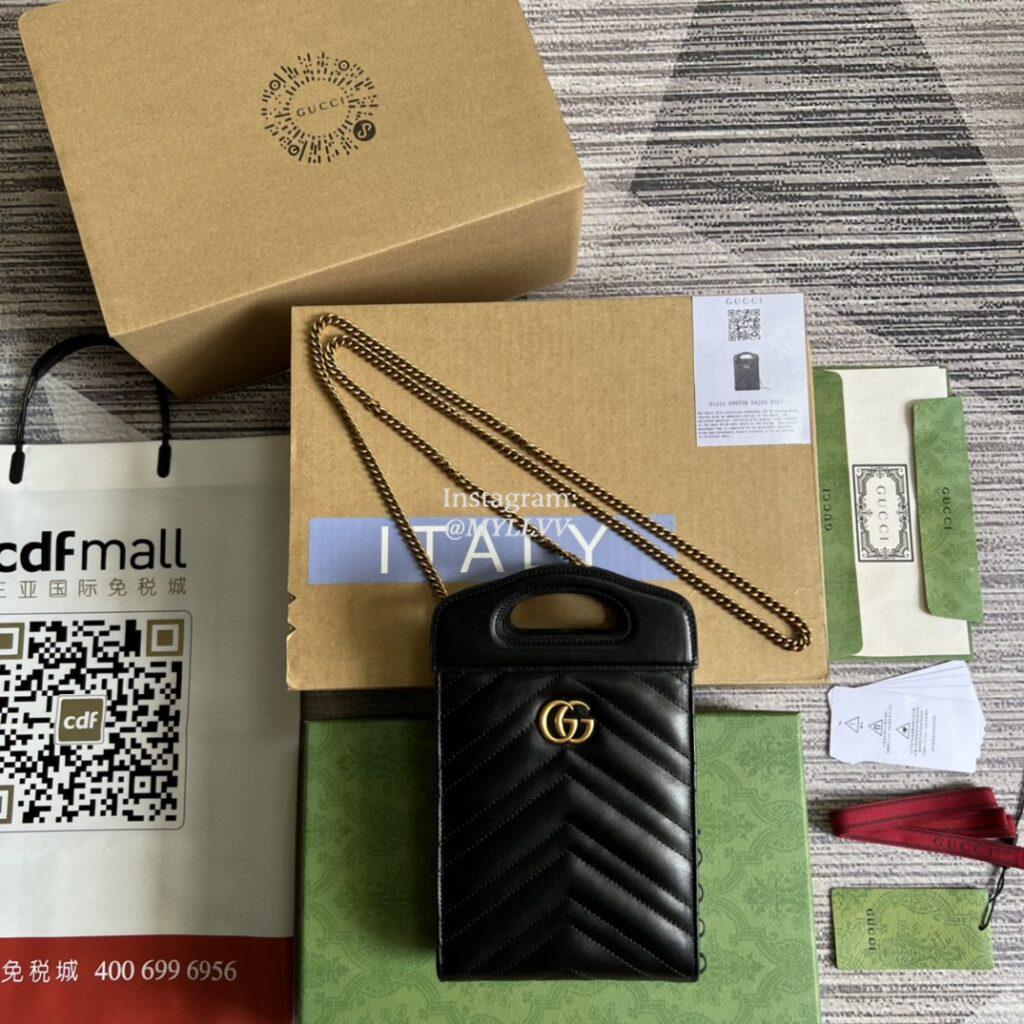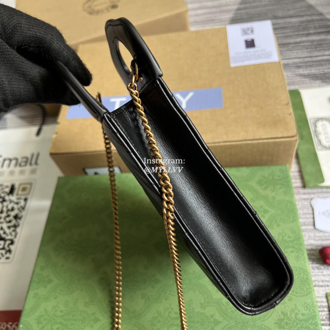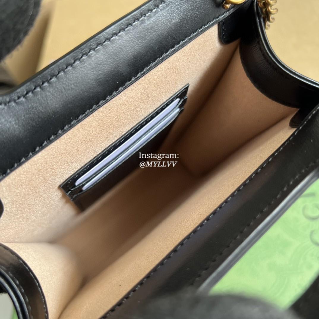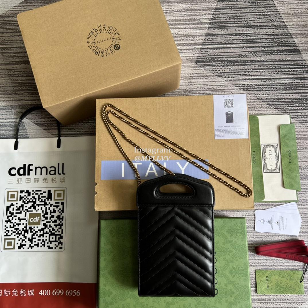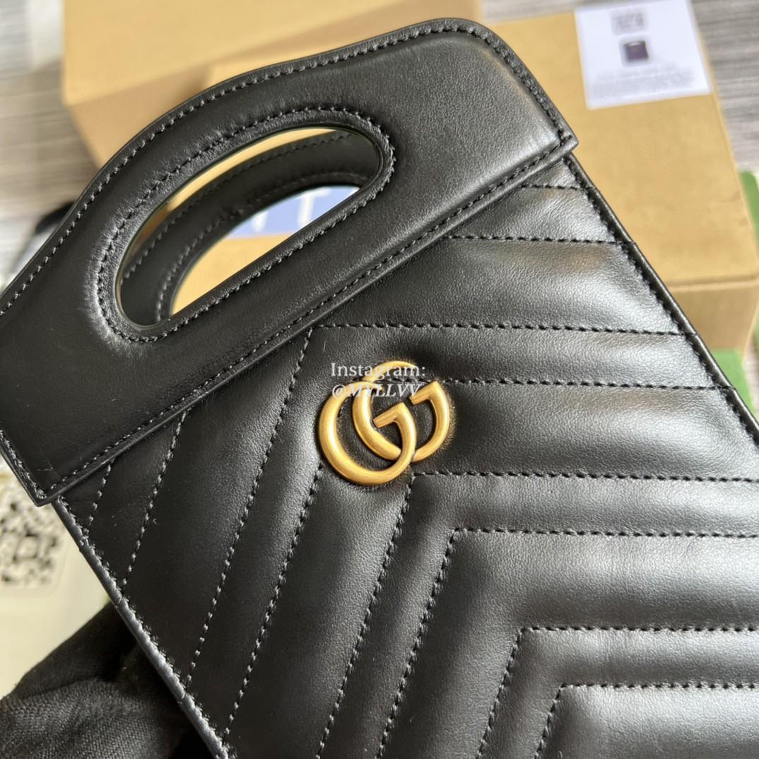 Top Quality Version:MYLLVV » Gucci Black Matelassé Chevron Leather GG Marmont Top Handle Mini Bag 699756