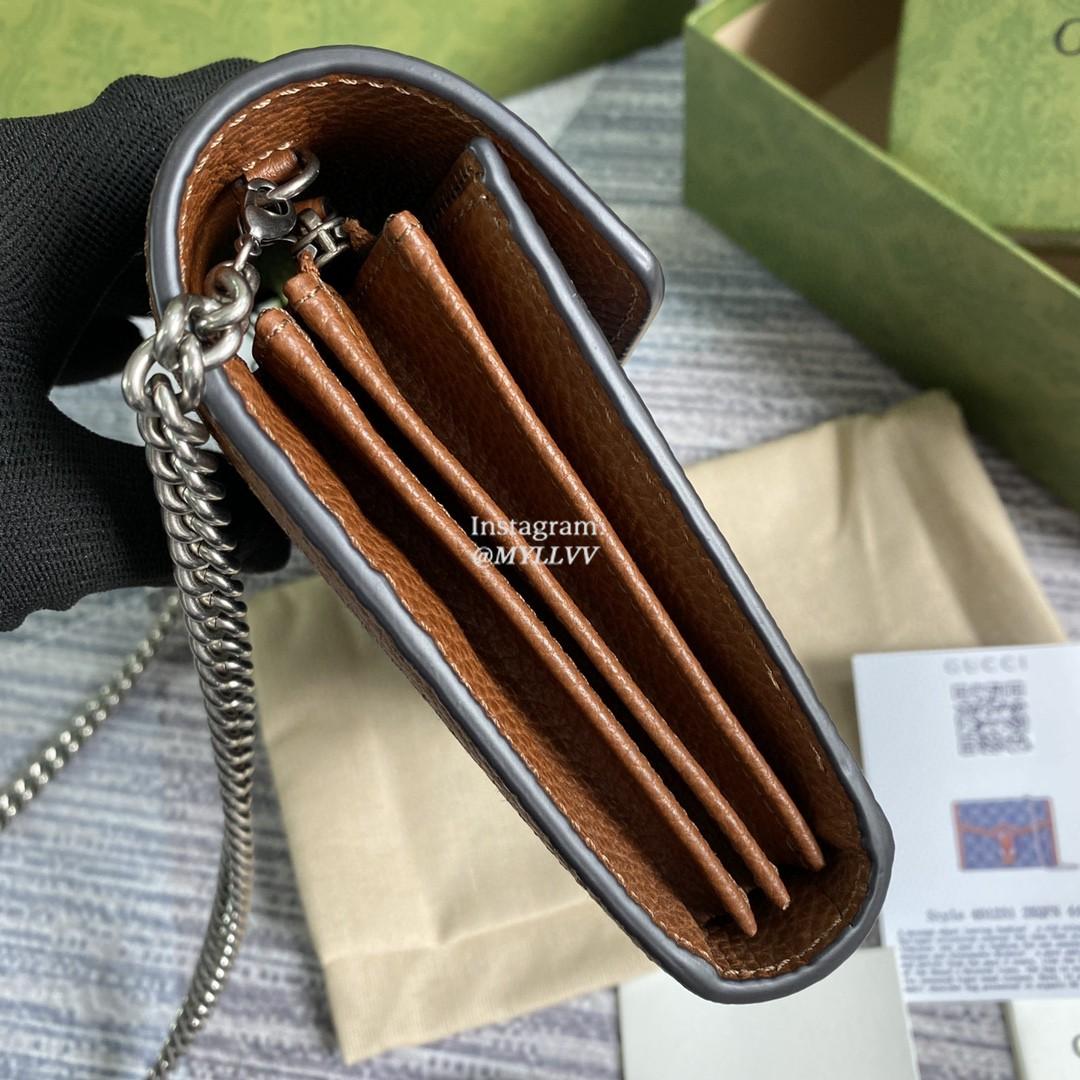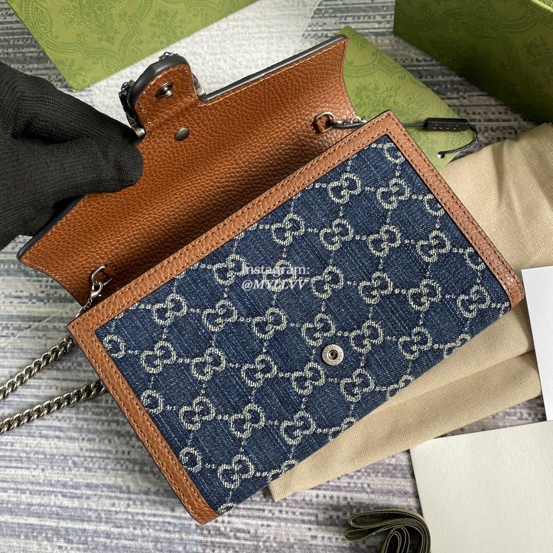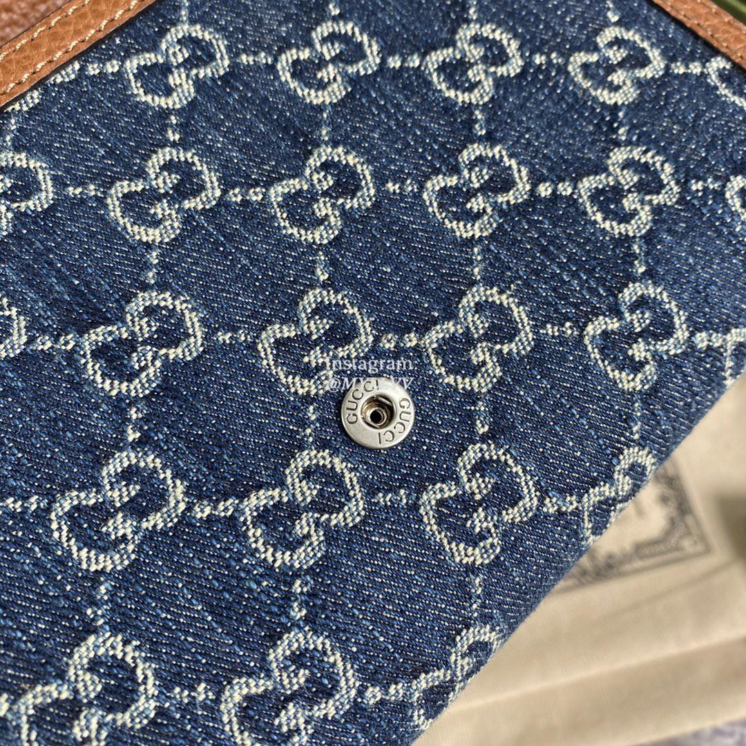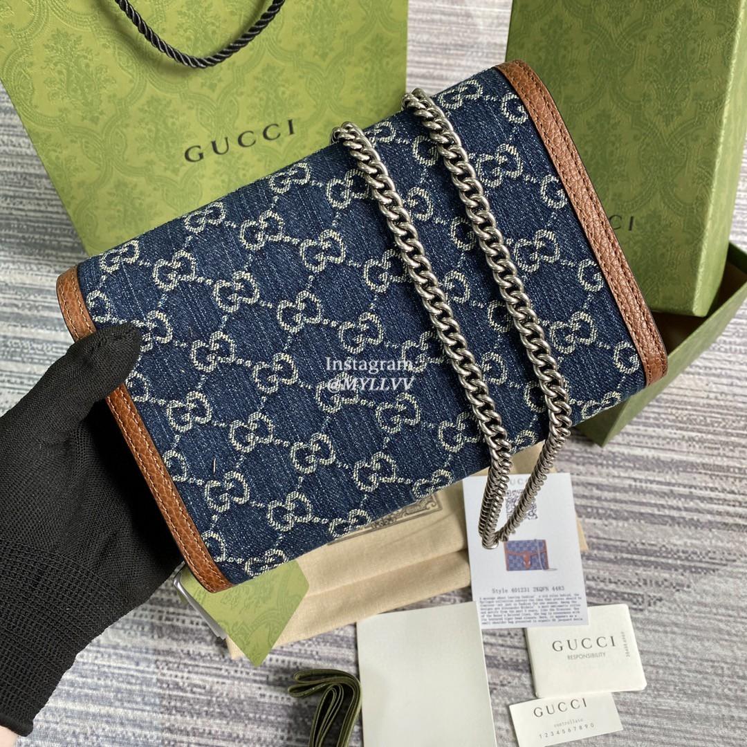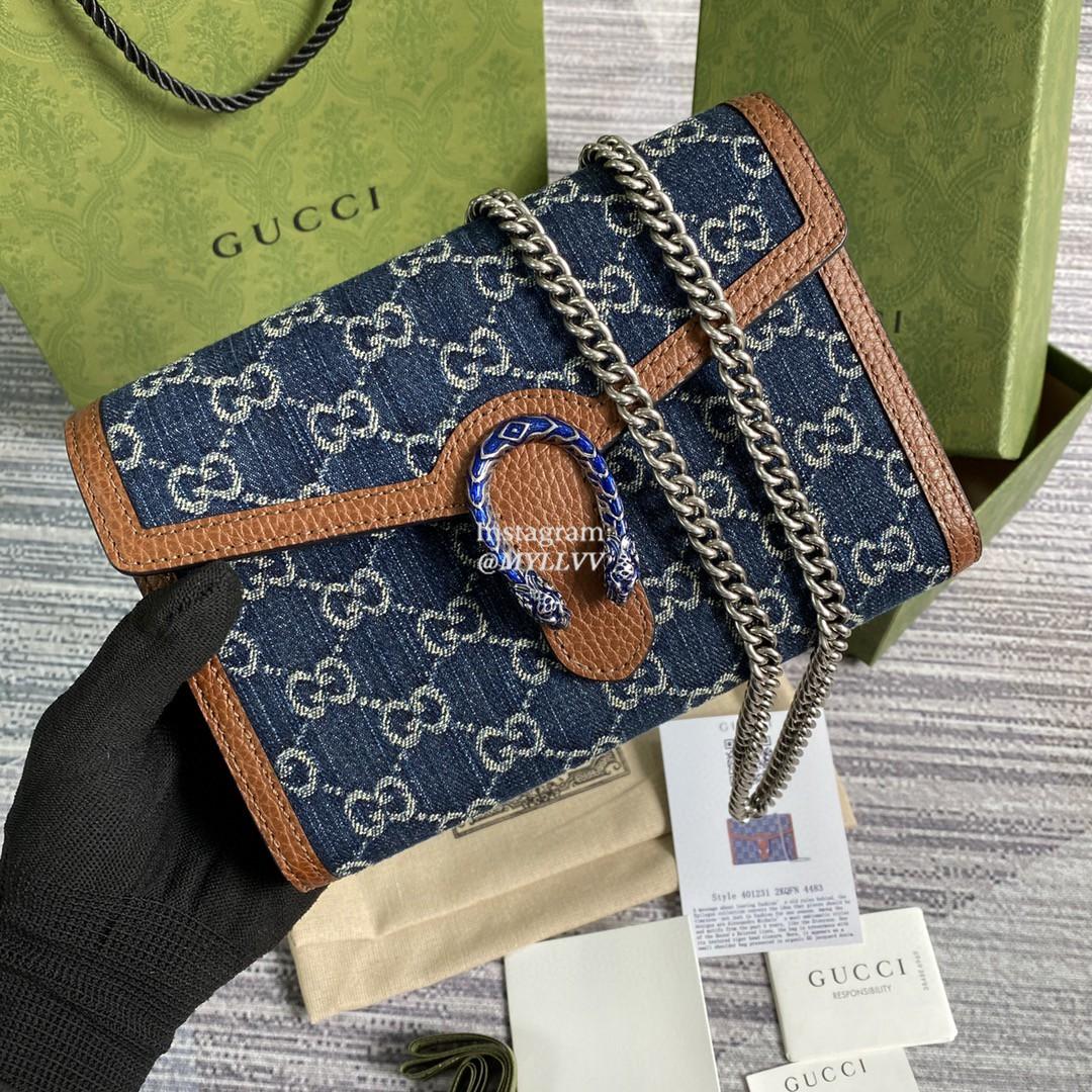 Top Quality Version:MYLLVV » Gucci Blue And Ivory GG Denim Jacquard Dionysus Mini Chain Wallet 401231