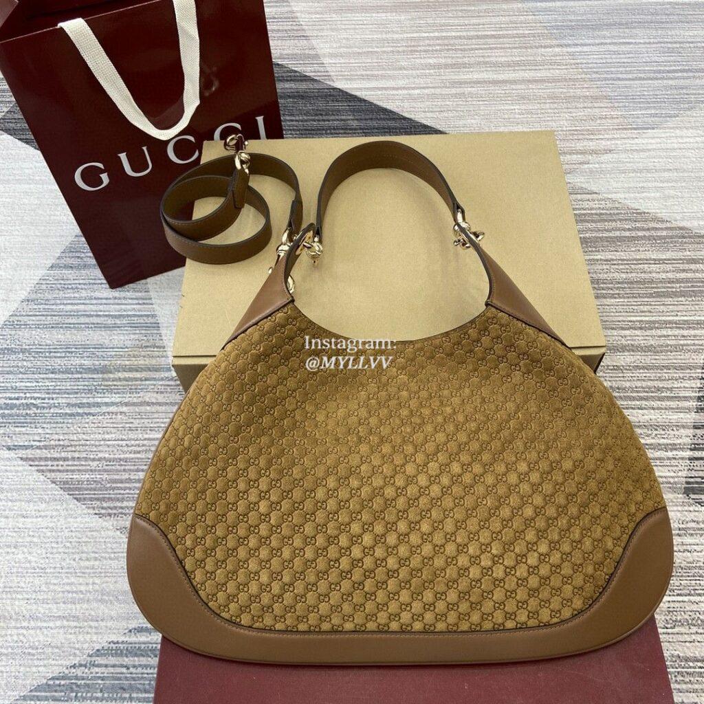 Presenting the Gucci Body double lock handbag, inspired by vintage designs from the 1950s. This shoulder bag carries the essence of classic mid-20th century design, crafted with soft suede material and comes with a shoulder strap for crossbody carrying.