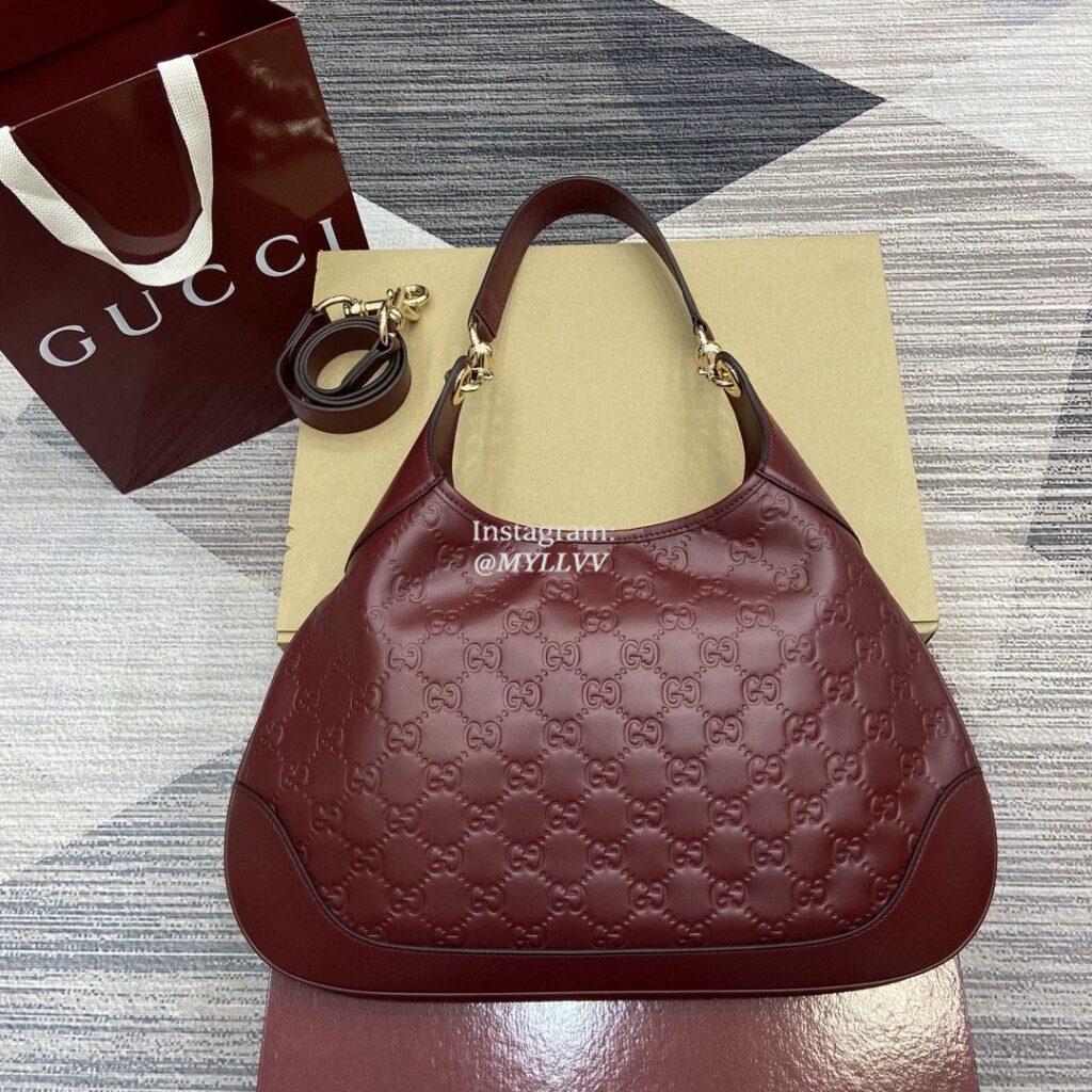 Gucci Rosso Ancora GG printed embossed cowhide leather