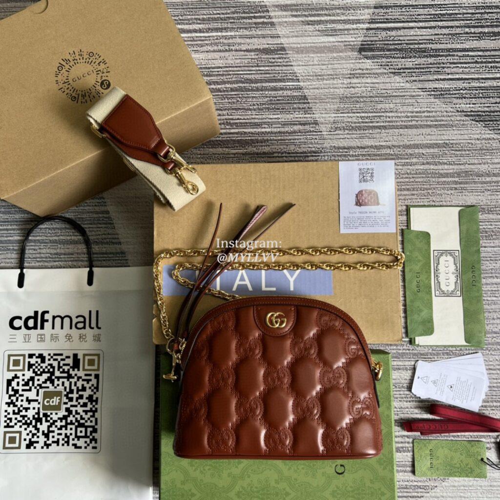 Top Quality Version:MYLLVV » Gucci Brown GG Matelassé Leather Small Bag 702229