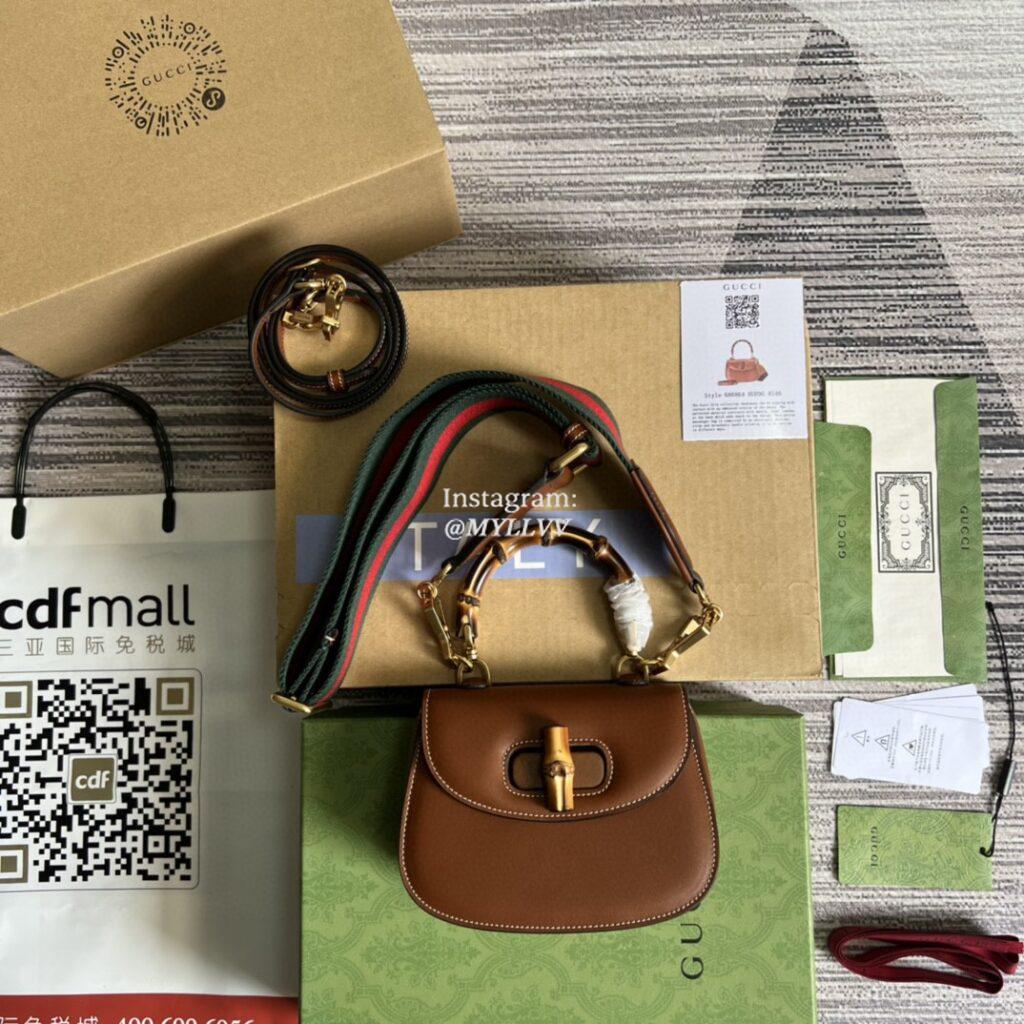 Top Quality Version:MYLLVV » Gucci Brown Leather Gucci Bamboo 1947 Mini Top Handle Bag 686864