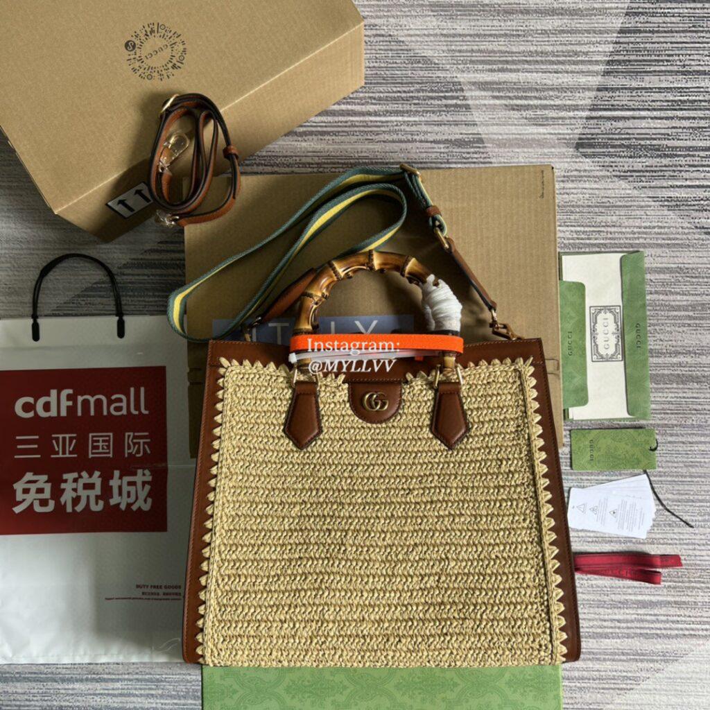Top Quality Version:MYLLVV » Gucci Brown Rattan Weaving Diana Medium Tote Bag 678842