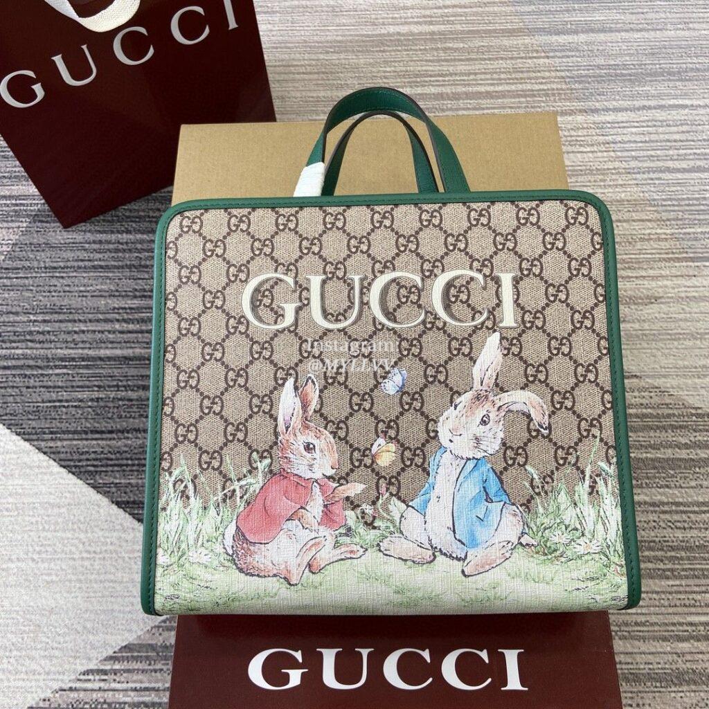 Top Quality Version:MYLLVV » Gucci Children’s Printed GG Tote Bag Green Rabbit 605614