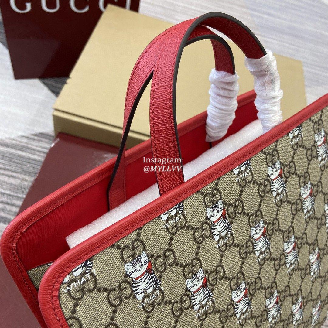 Top Quality Version:MYLLVV » Gucci Children’s Printed GG Tote Bag Red Kitten 605614