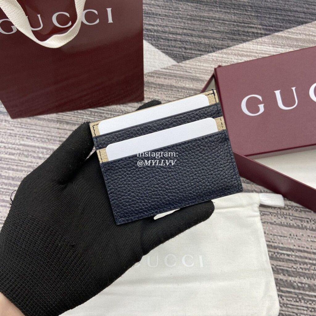 New color scheme combined with rich elements, revitalizing the classic small accessories of the 2025 early spring collection. This card holder is crafted with blue and oat cowhide leather, cleverly incorporating the Gucci logo.