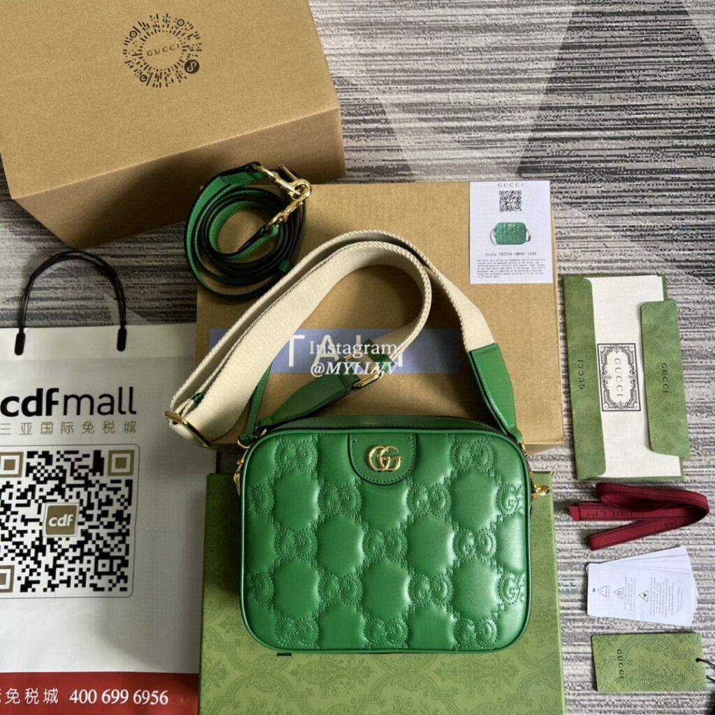 Top Quality Version:MYLLVV » Gucci Dusty Green GG Matelassé Leather GG Matelassé Leather Small Bag 702234