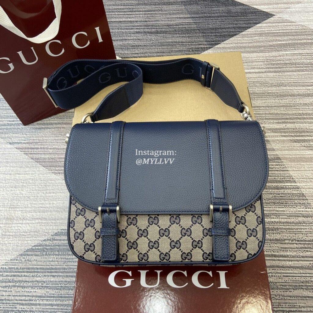Selected men’s handbags such as crossbody bags, briefcases, and tote bags interpret the new trend with practical details. This crossbody bag is crafted from the iconic classic GG canvas, with beige and blue colors complementing the lightweight texture. The GG pattern injects a strong sense of identity into the handbag. Carefully equipped with a zipper pocket and a flat pocket, the deep blue leather edging adds even more charm to the entire design.