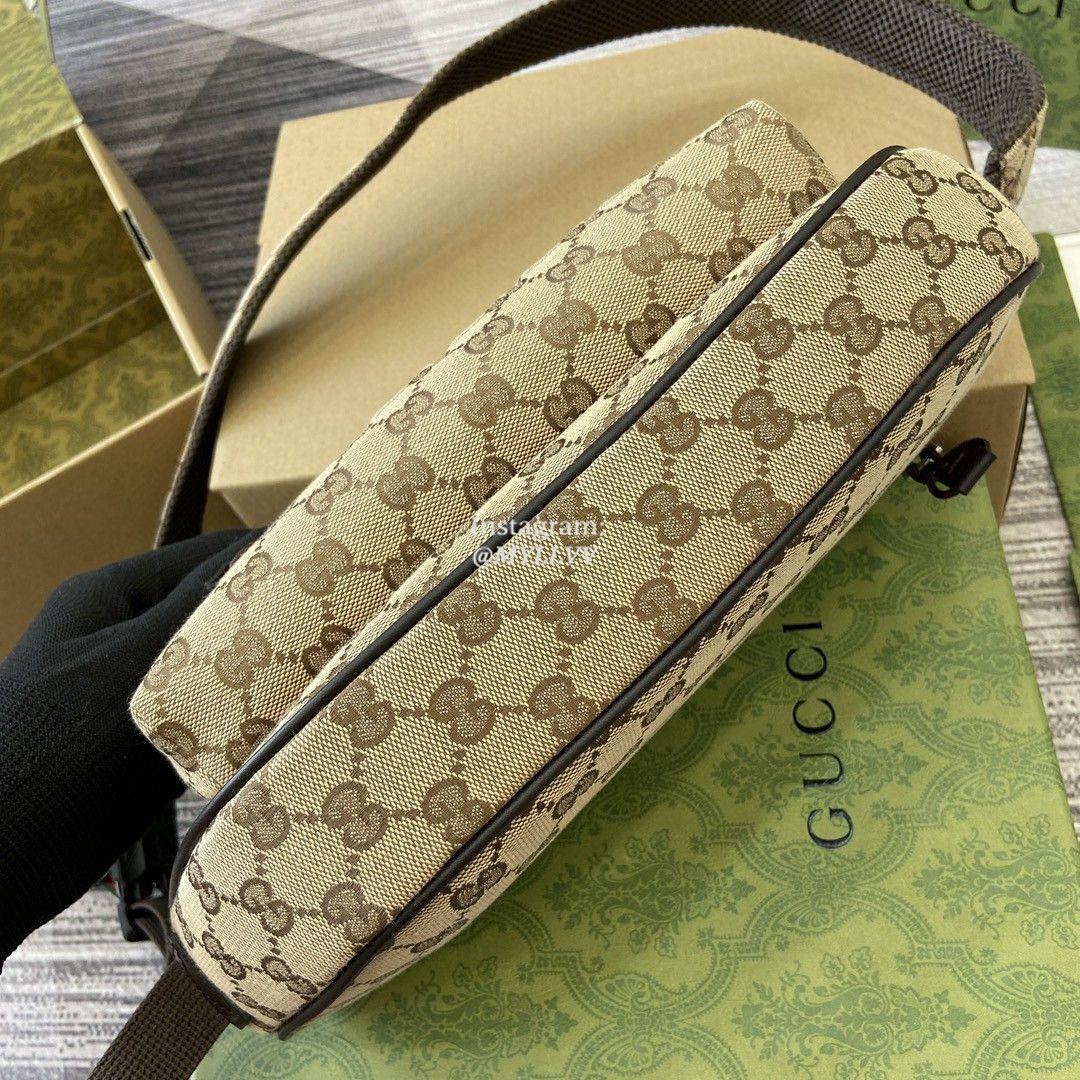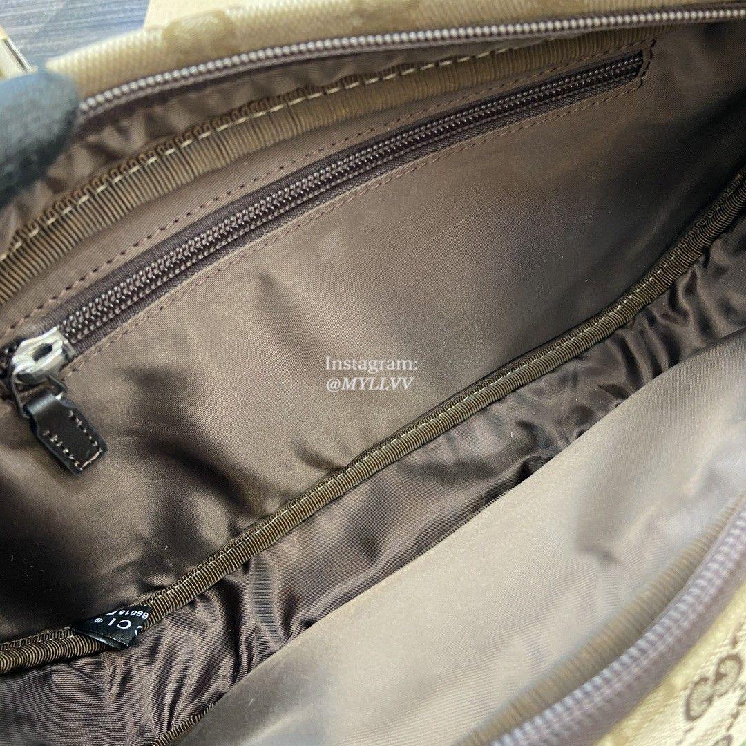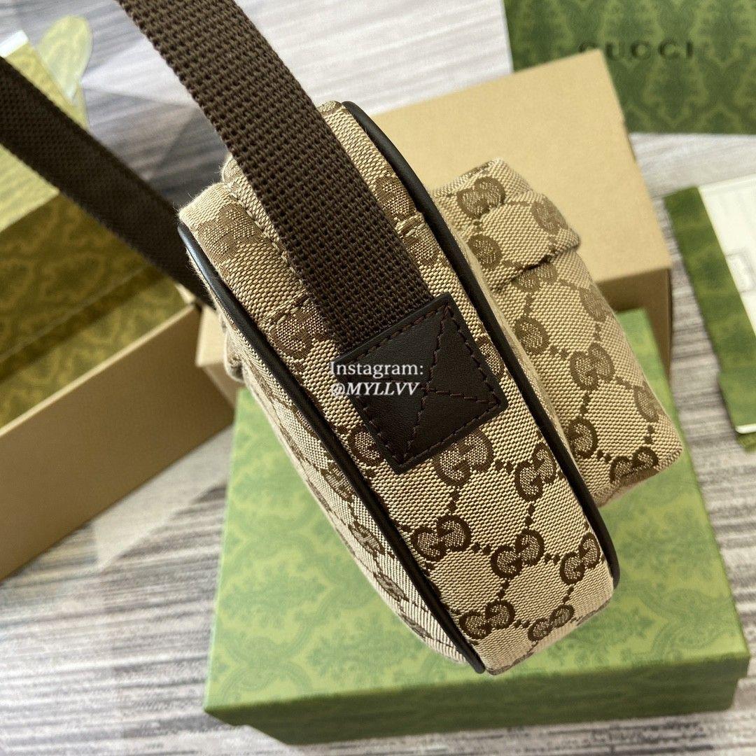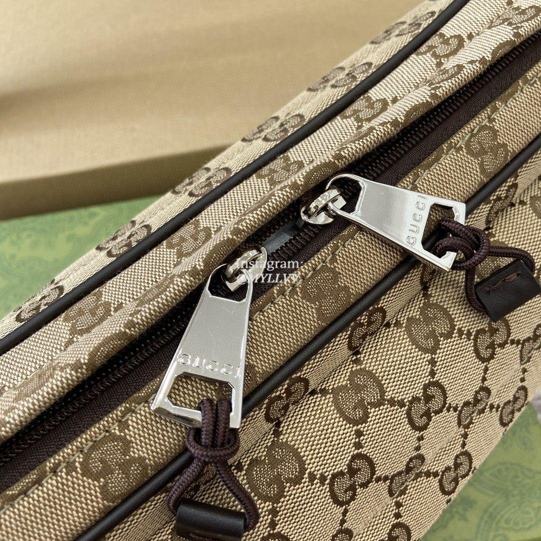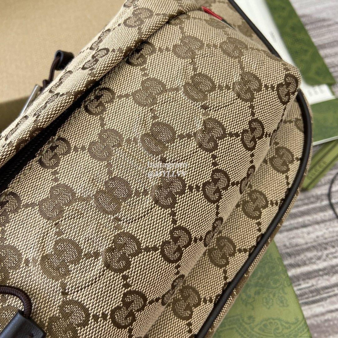The classic items of the autumn and winter men’s collection vividly showcase a sporty style. This series of items is made of Original GG canvas, with a timeless silhouette and carefully selected color schemes. Exquisite details such as webbing and Gucci embossed logos convey a fashionable atmosphere. This small crossbody bag is made of beige and ebony canvas, with multiple pockets and an adjustable shoulder strap.
