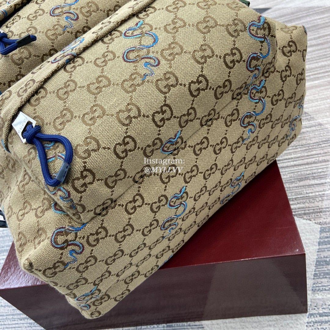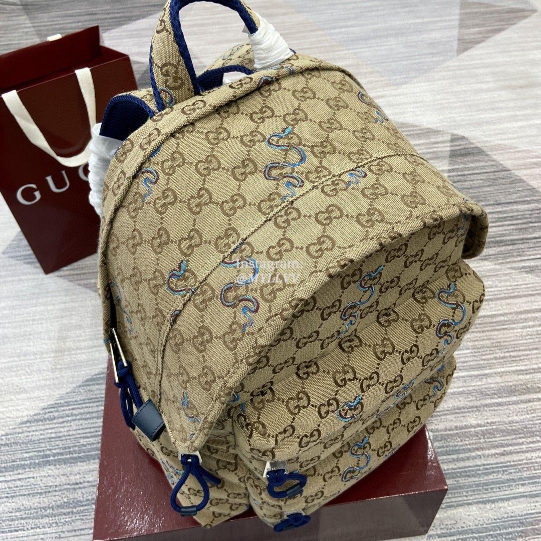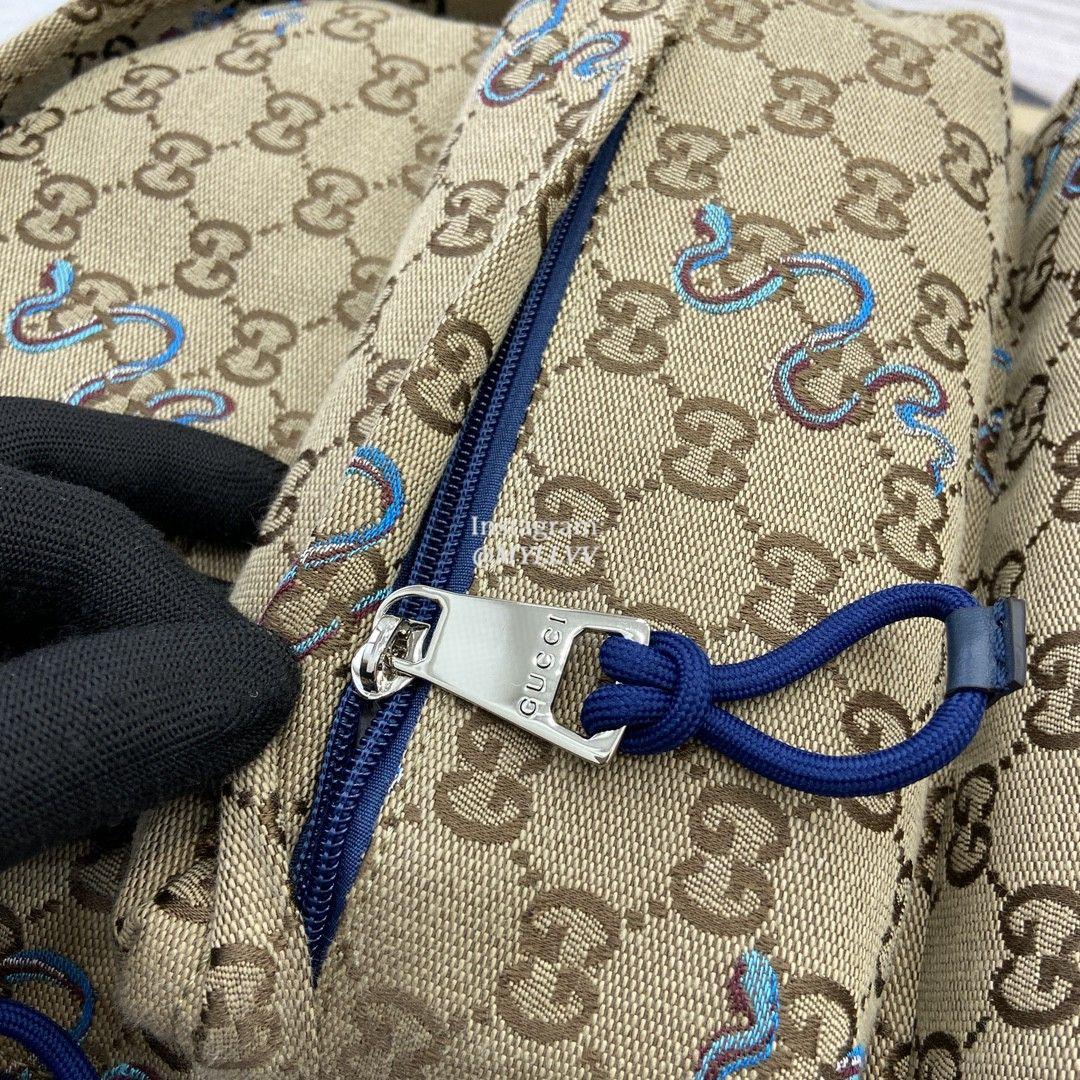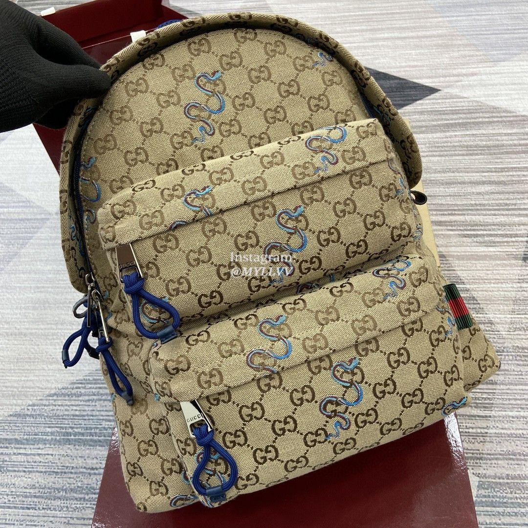 As a masterpiece of the 2024 autumn/winter men’s fashion show, this backpack ingeniously integrates fashionable lines and sporty style. This backpack is made of classic GG canvas material in beige and ebony colors, and is intricately decorated with Gucci embossed logos created using high-frequency embossing technology. It is low-key, understated, and exquisite. Other classic details include the red and green ribbon details on the zipper outer pocket.