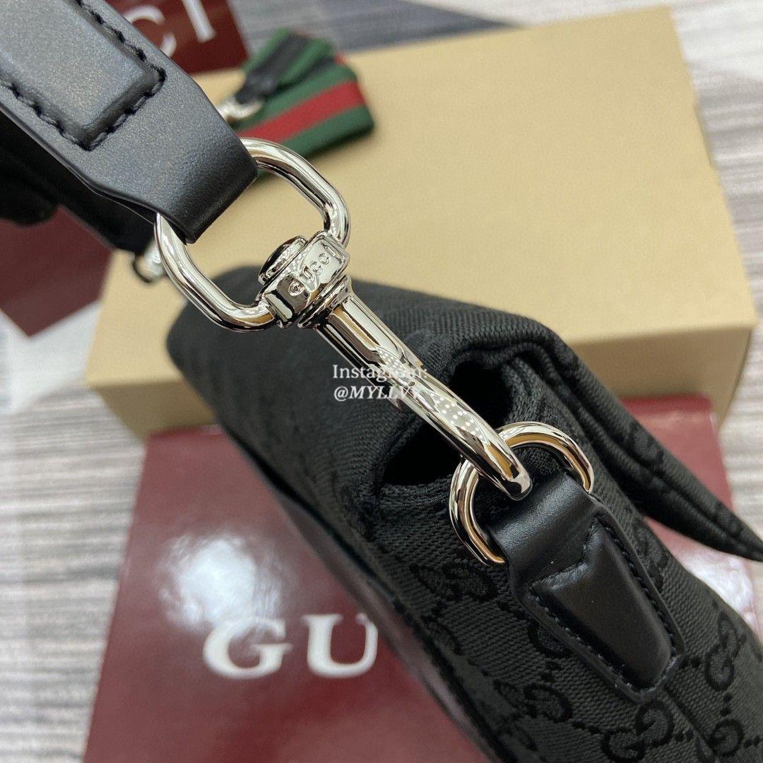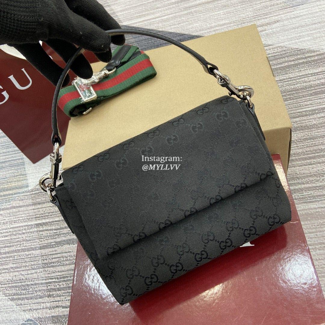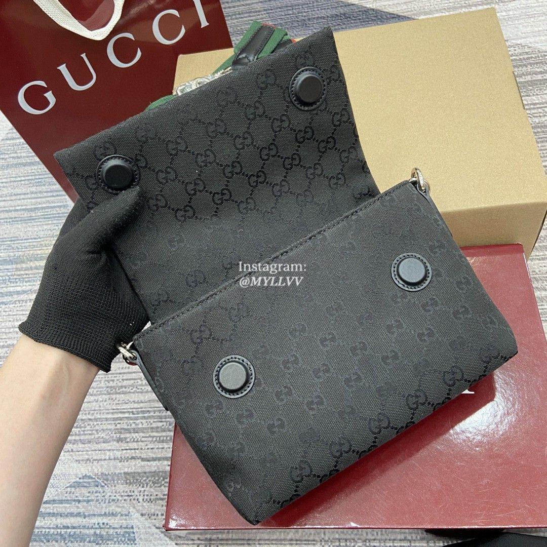 2025 Spring/Summer Collection presents exciting new handbag creations. This men’s handbag features a soft yet crisp design with a smooth texture. The magnetic buckle flip cover is easy to open and close, and the craftsmanship blends exquisite craftsmanship with practical design. This crossbody bag is meticulously crafted from all black Original GG canvas. The Gucci printed embossed logo on the back is delicate and understated, becoming the finishing touch of the item.