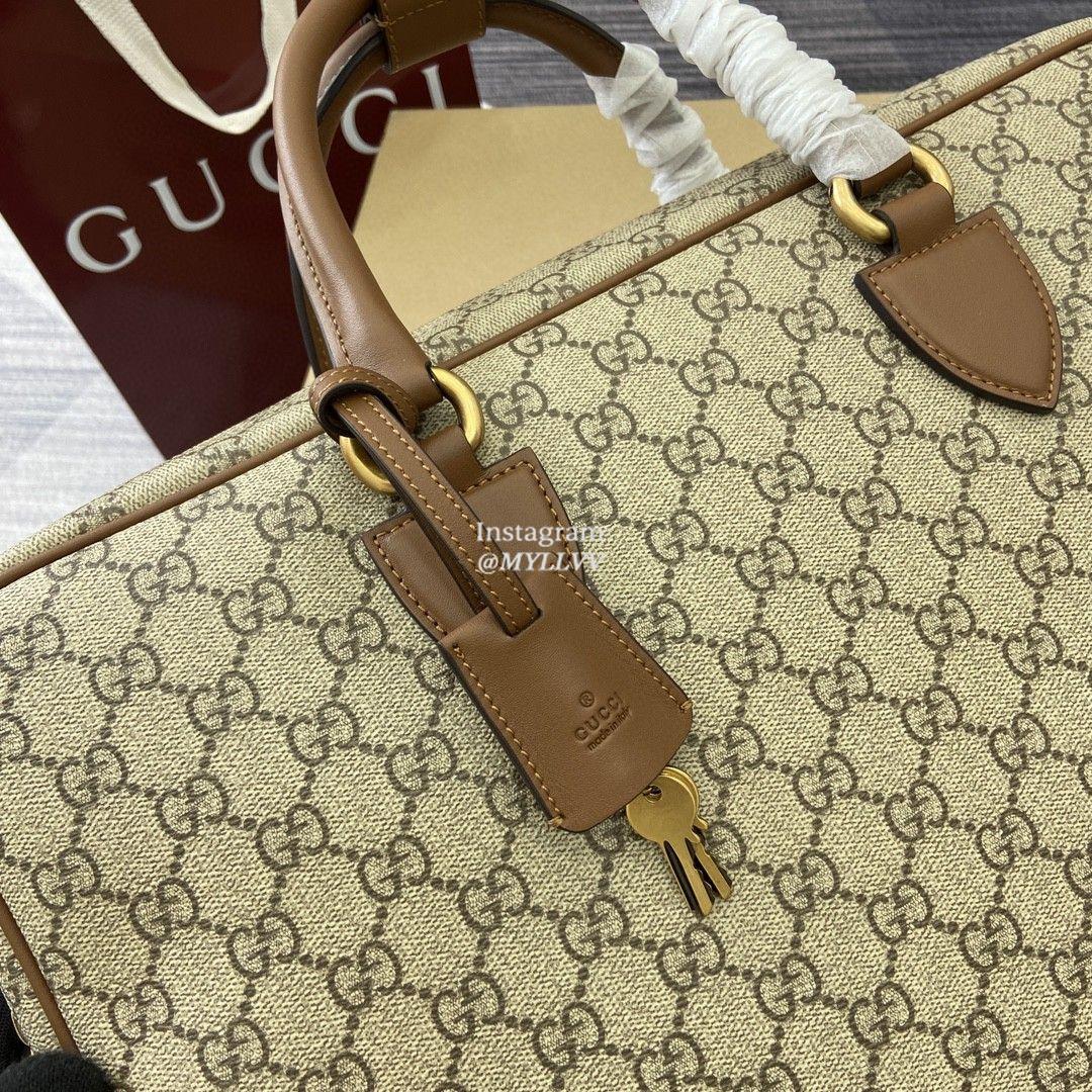 The all-new GG Emblem series of men’s travel items reinterpret the brand’s timeless elegance and exquisite craftsmanship. This briefcase is crafted with a brand new brown GG letter pattern coated fabric, featuring multiple functional compartments and a D-ring for attaching accessories.