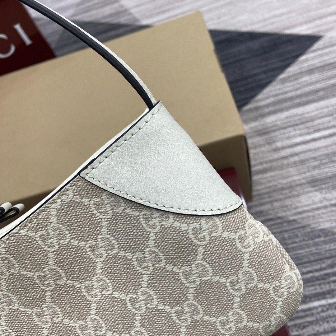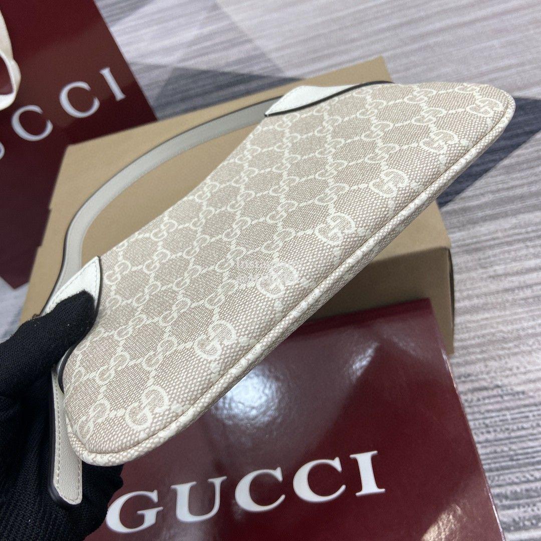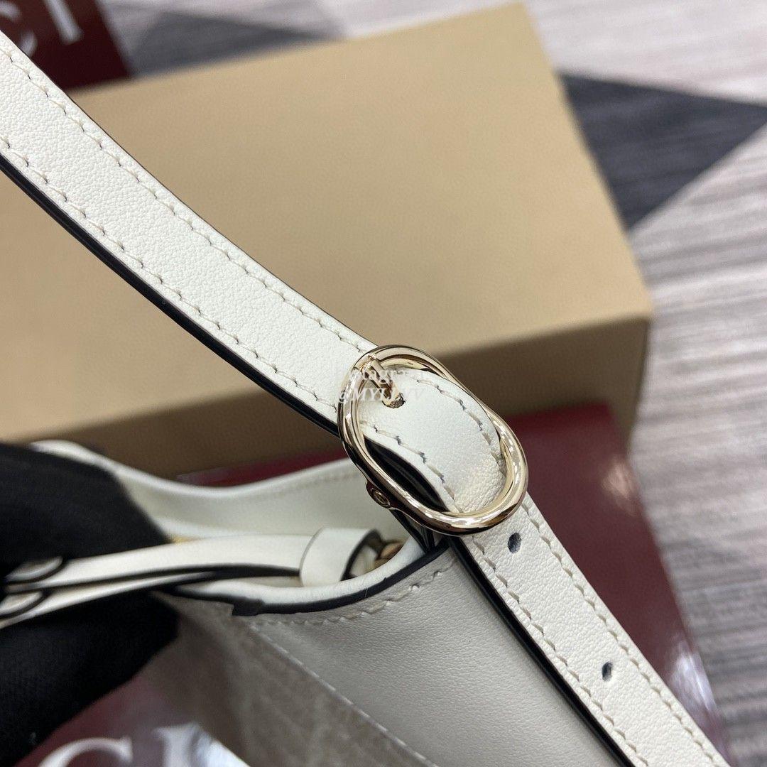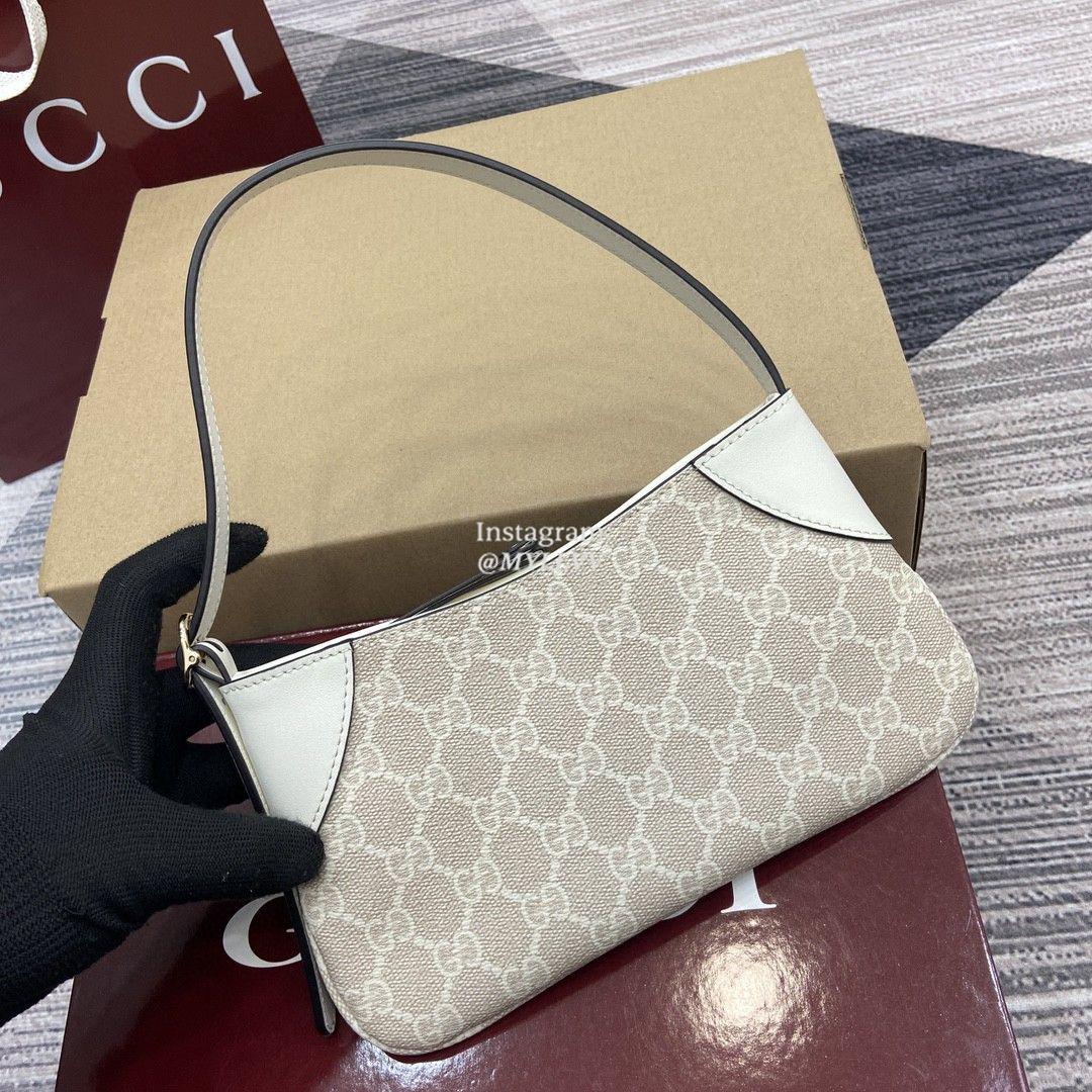 In the 2025 Spring/Summer collection, the GG Emblem shoulder bag reinterprets the brand’s timeless elegance and exquisite craftsmanship. This shoulder bag is presented with white craftsmanship and is made of GG letter interwoven pattern coated fabric. This item is embellished with leather rolled edges and features a zipper closure.