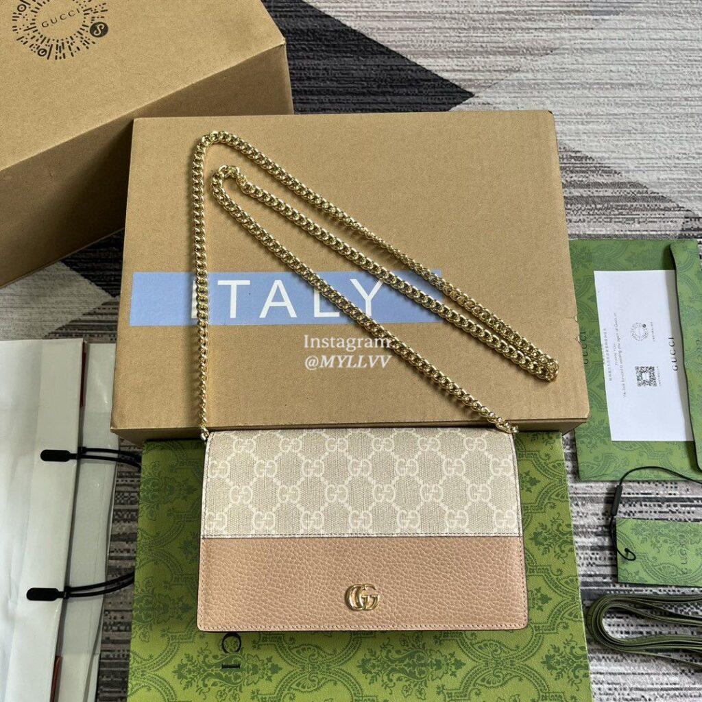 Top Quality Version:MYLLVV » Gucci GG Marmont Bi-Color Wallet On Chain Beige And White