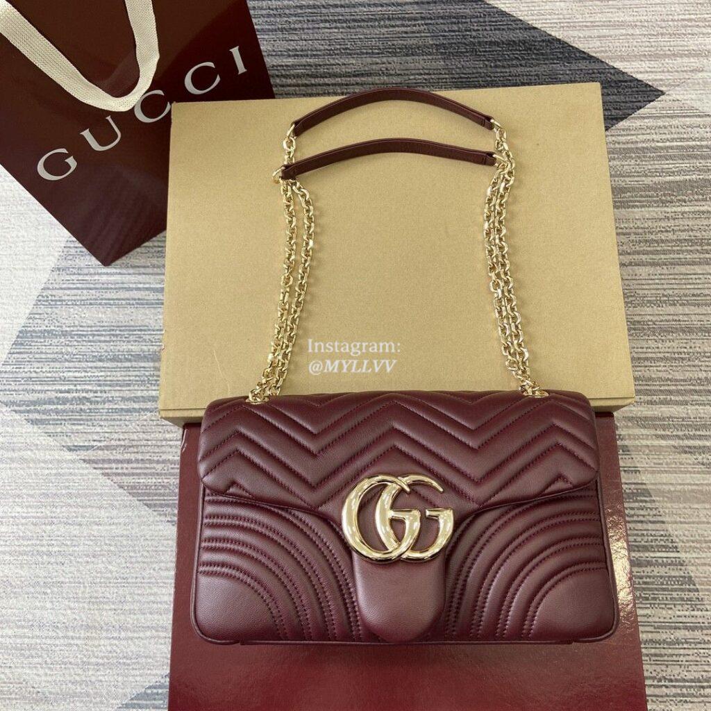 The iconic GG Marmont series of the brand ingeniously integrates double G shaped accessories and cut chain straps, selecting soft sheepskin leather to create a soft line bag shape. The simple and neat back pocket makes medium and large bags more practical.