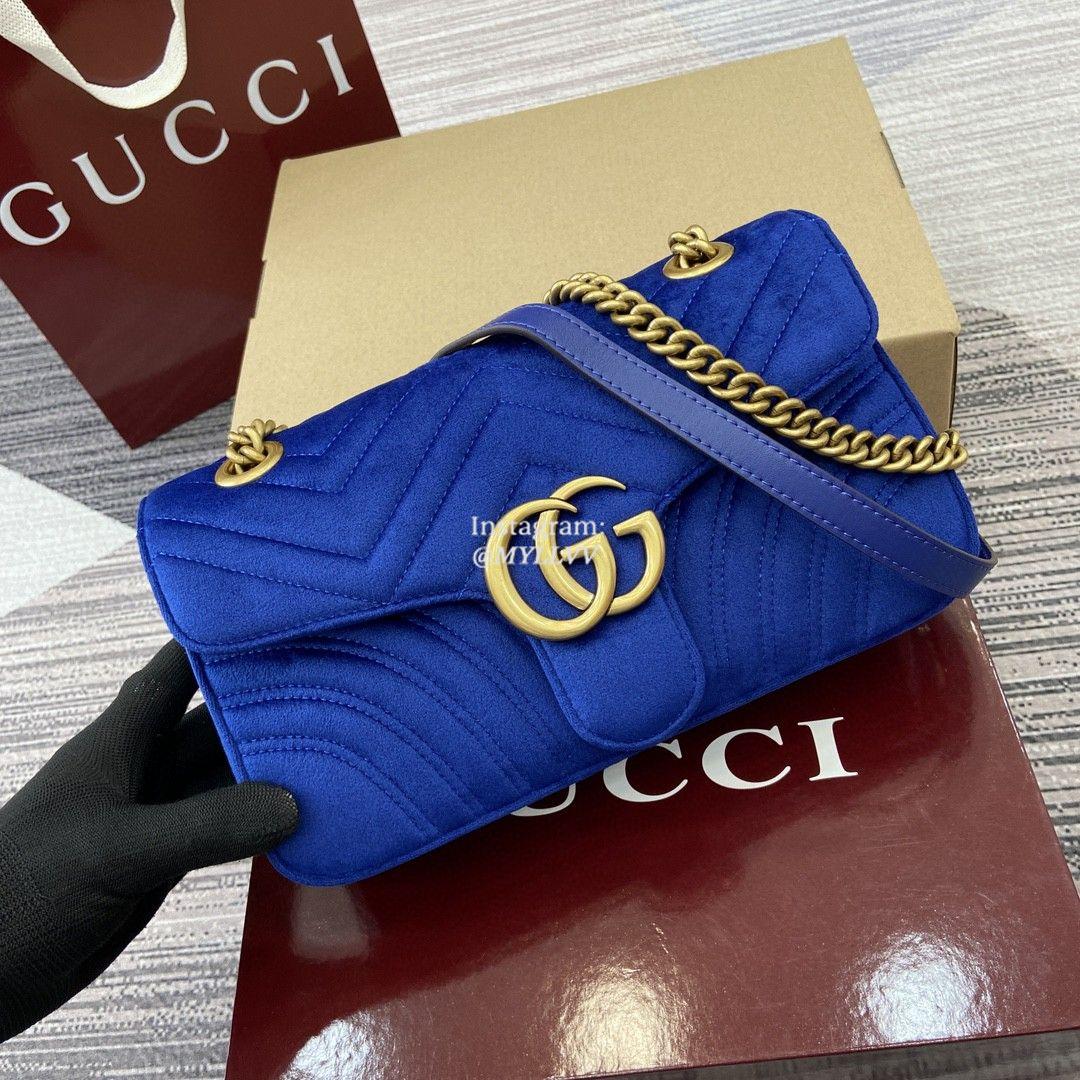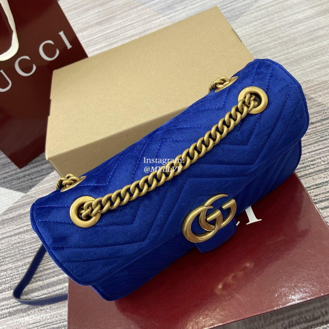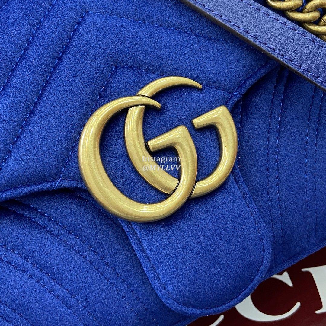 Top Quality Version:MYLLVV » Gucci GG Marmont Medium Shoulder Bag Suede Blue 443497