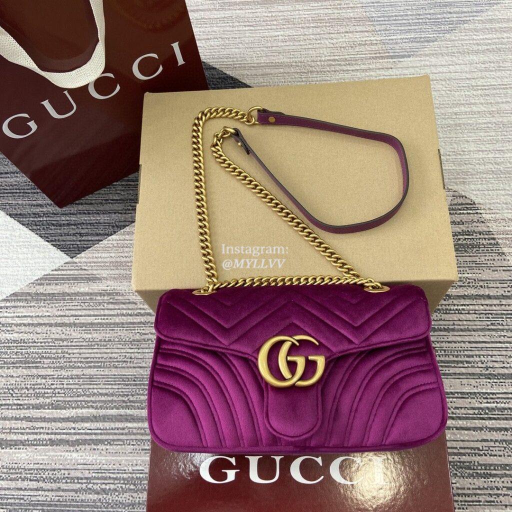 Gucci GG Marmont Medium Shoulder Bag Suede Purple 443497