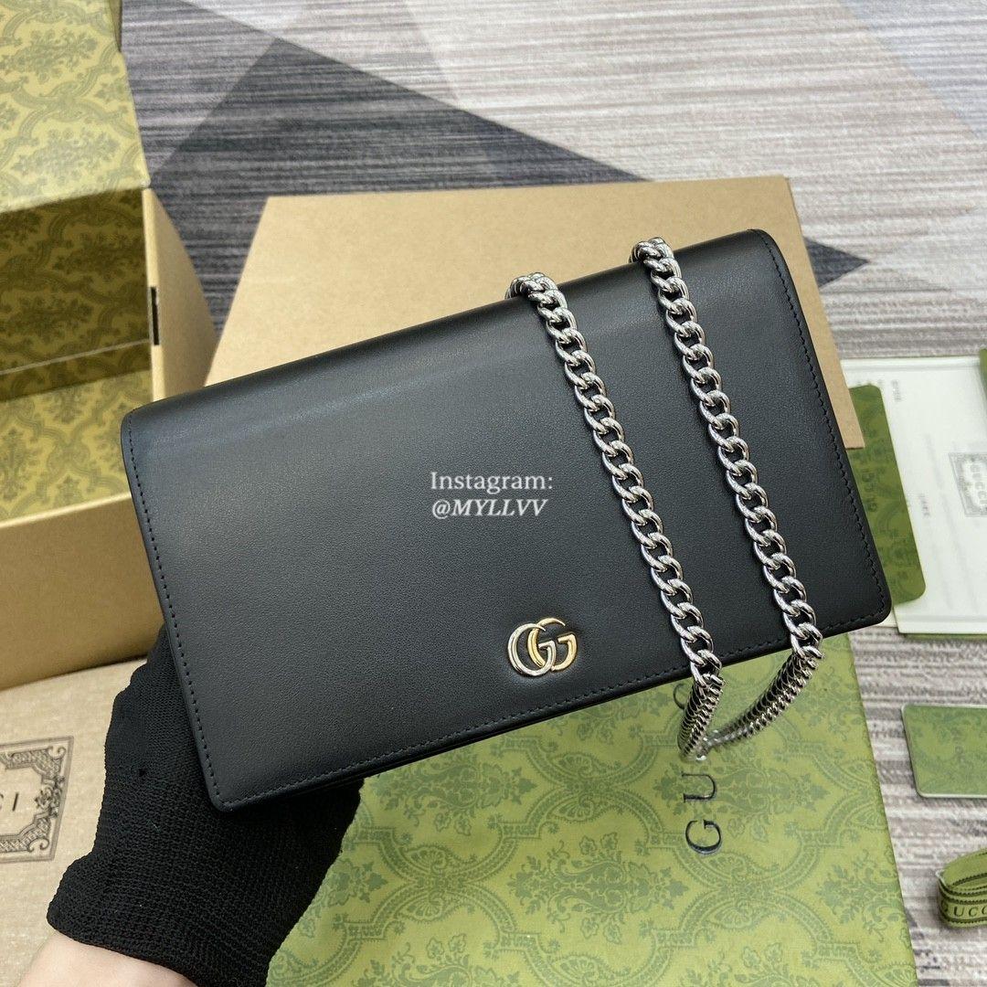 Top Quality Version:MYLLVV » Gucci GG Marmont Series Chain Strap Wallet Black 790060