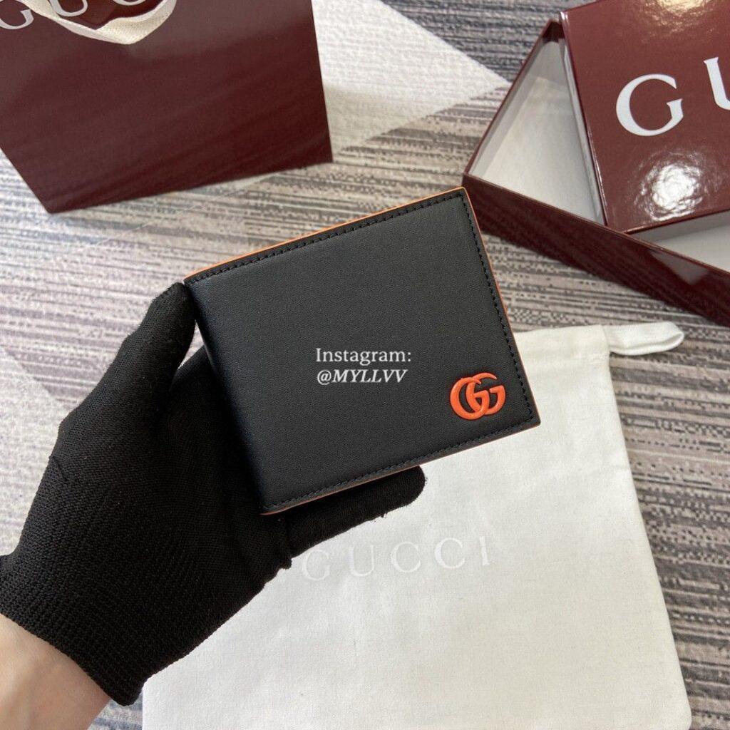Top Quality Version:MYLLVV » Gucci GG Marmont Series Double Fold Wallet Black Orange 835047