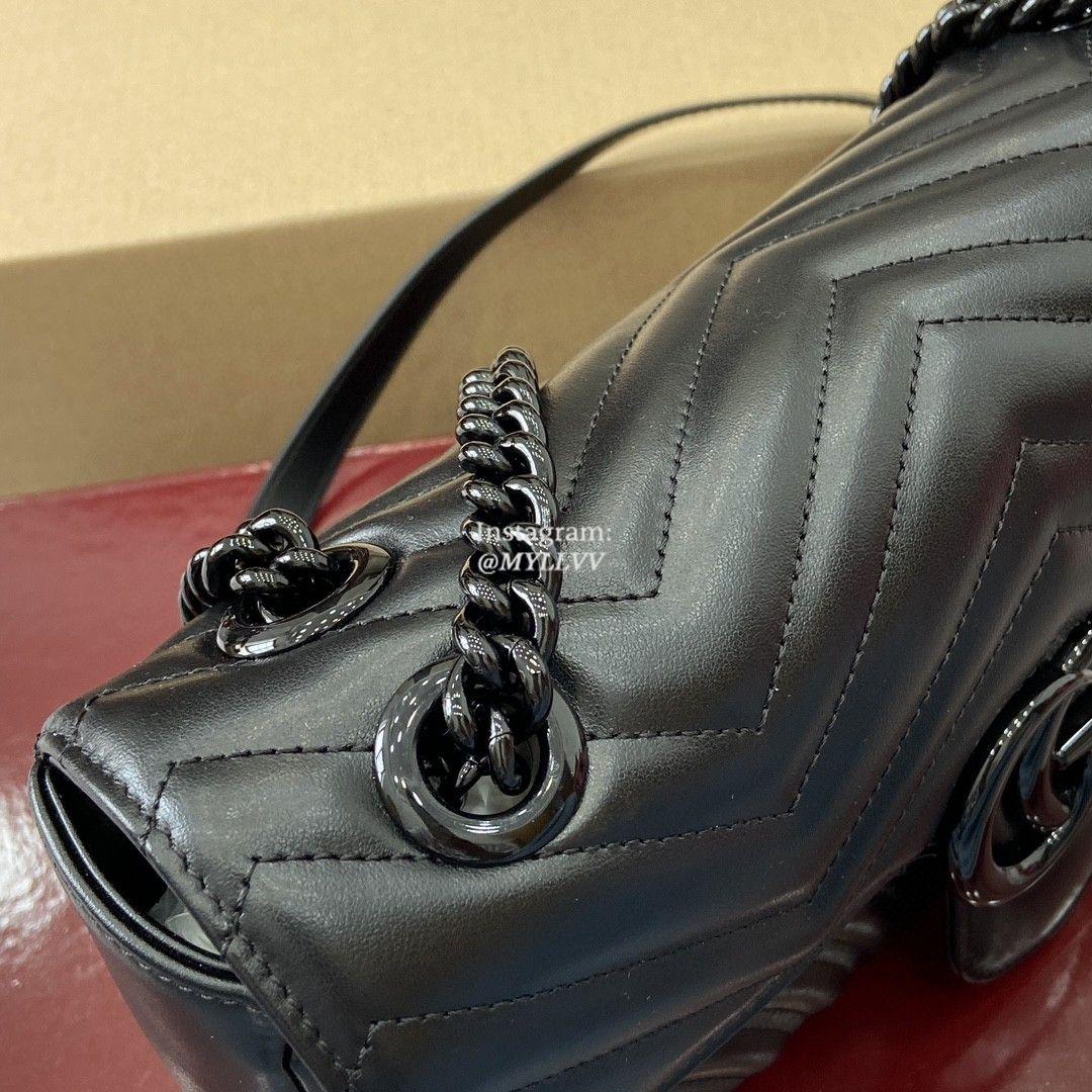 Top Quality Version:MYLLVV » Gucci GG Marmont Series Medium Shoulder Bag All Black 443497