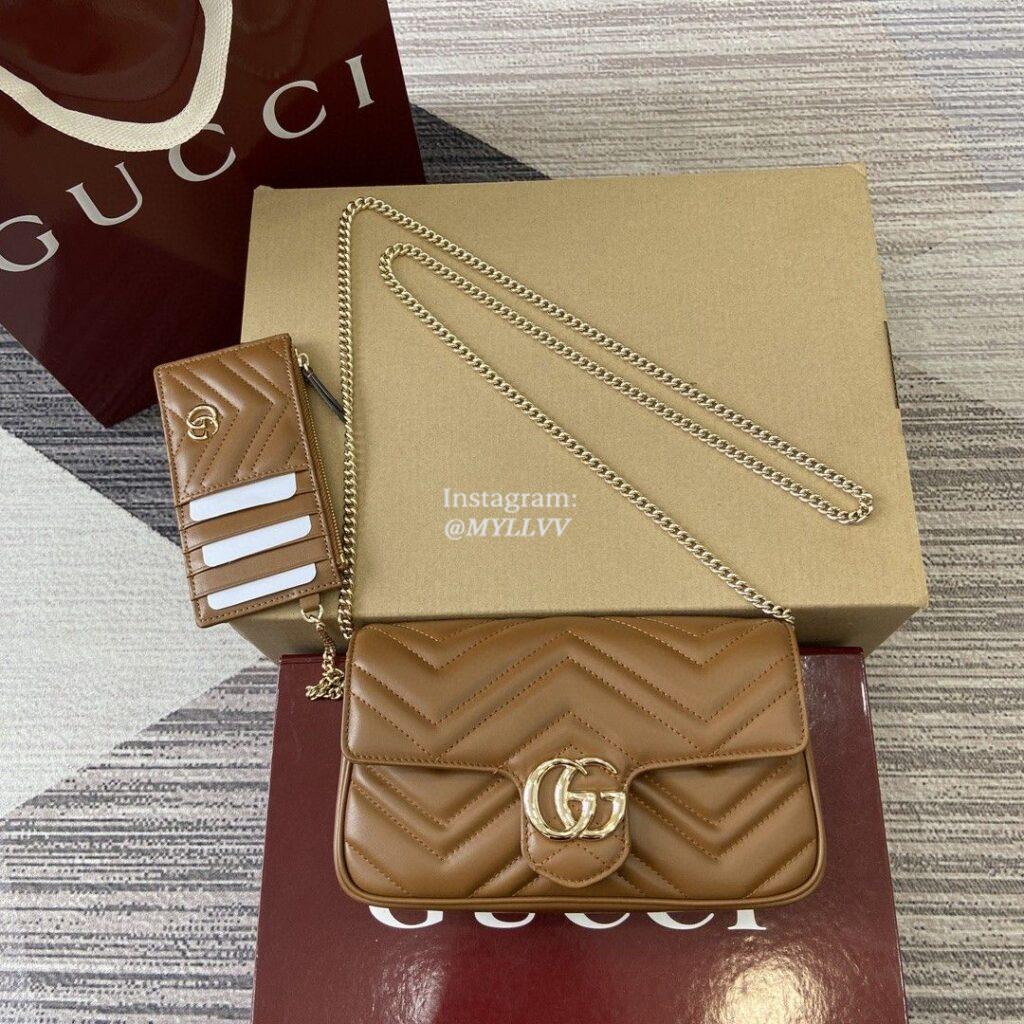 Top Quality Version:MYLLVV » Gucci GG Marmont Series Small Shoulder Bag (with card bag) Brown 751526