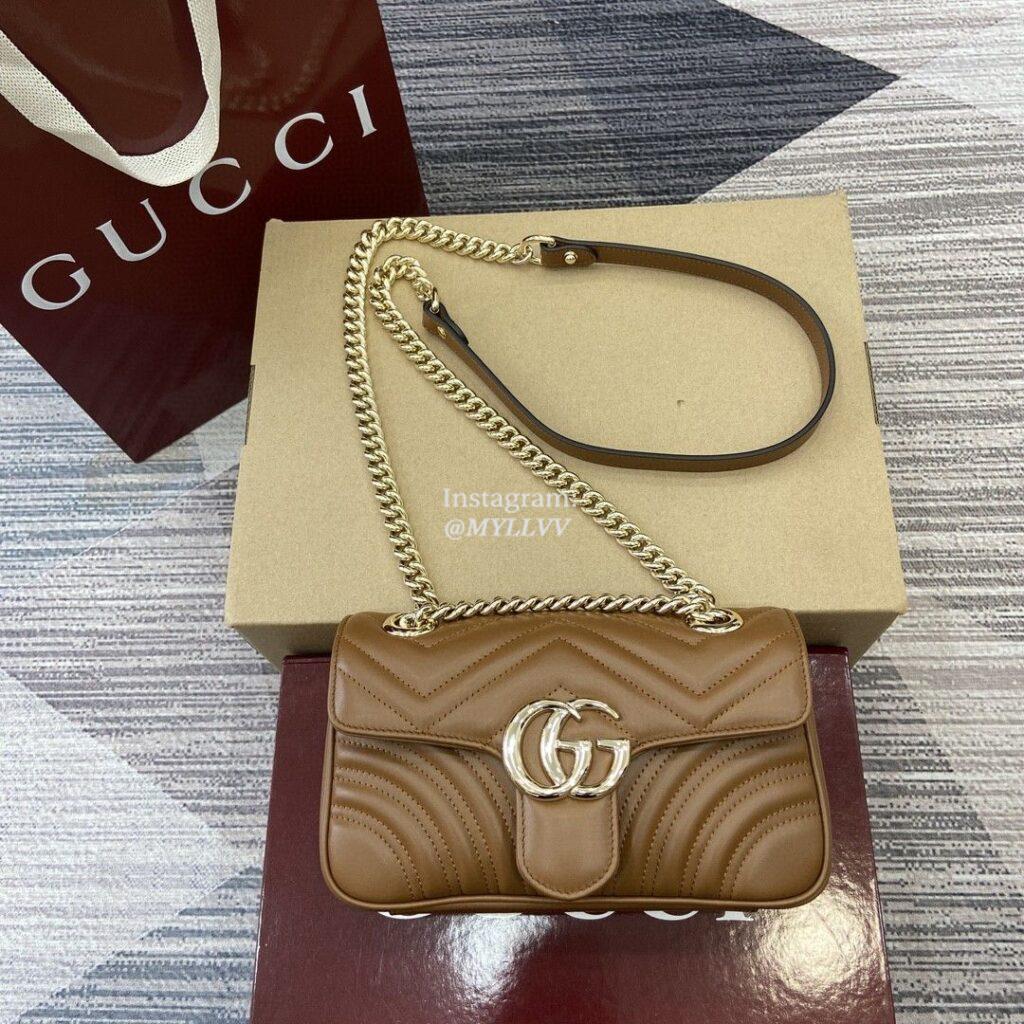 Top Quality Version:MYLLVV » Gucci GG Marmont Small Shoulder Bag Brown 446744