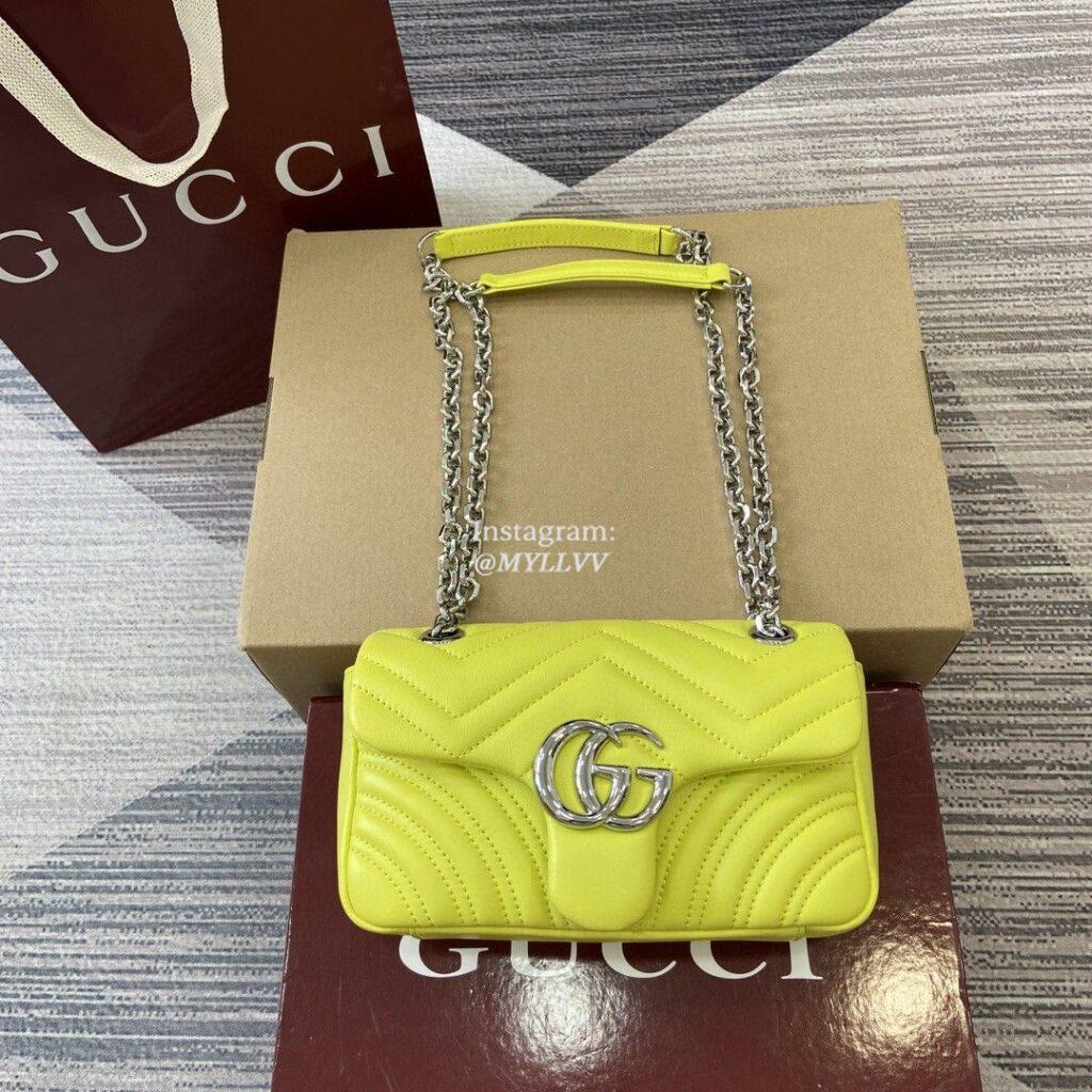 The iconic GG Marmont series of the brand ingeniously integrates double G shaped accessories and cut chain straps, selecting soft sheepskin leather to create a soft line bag shape.