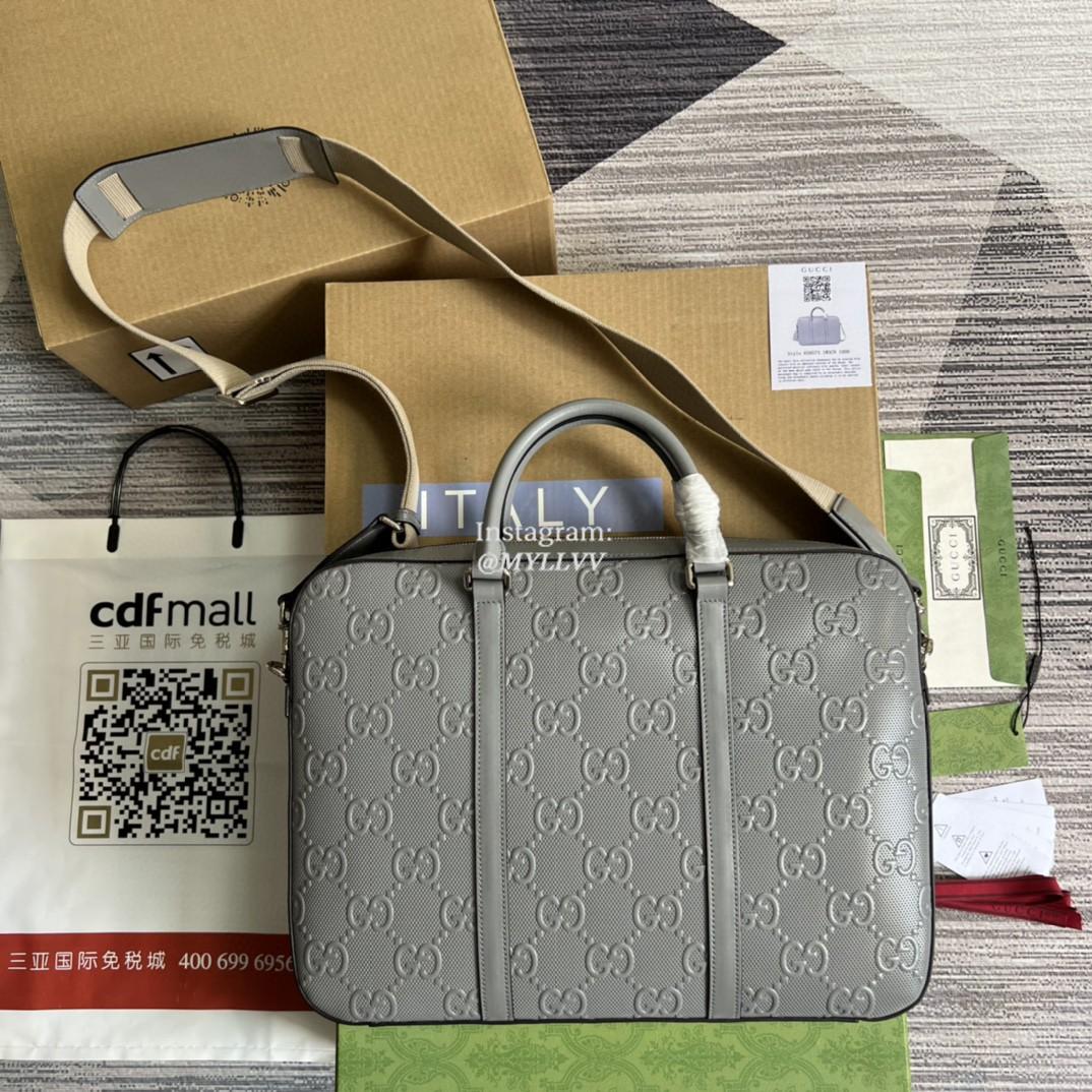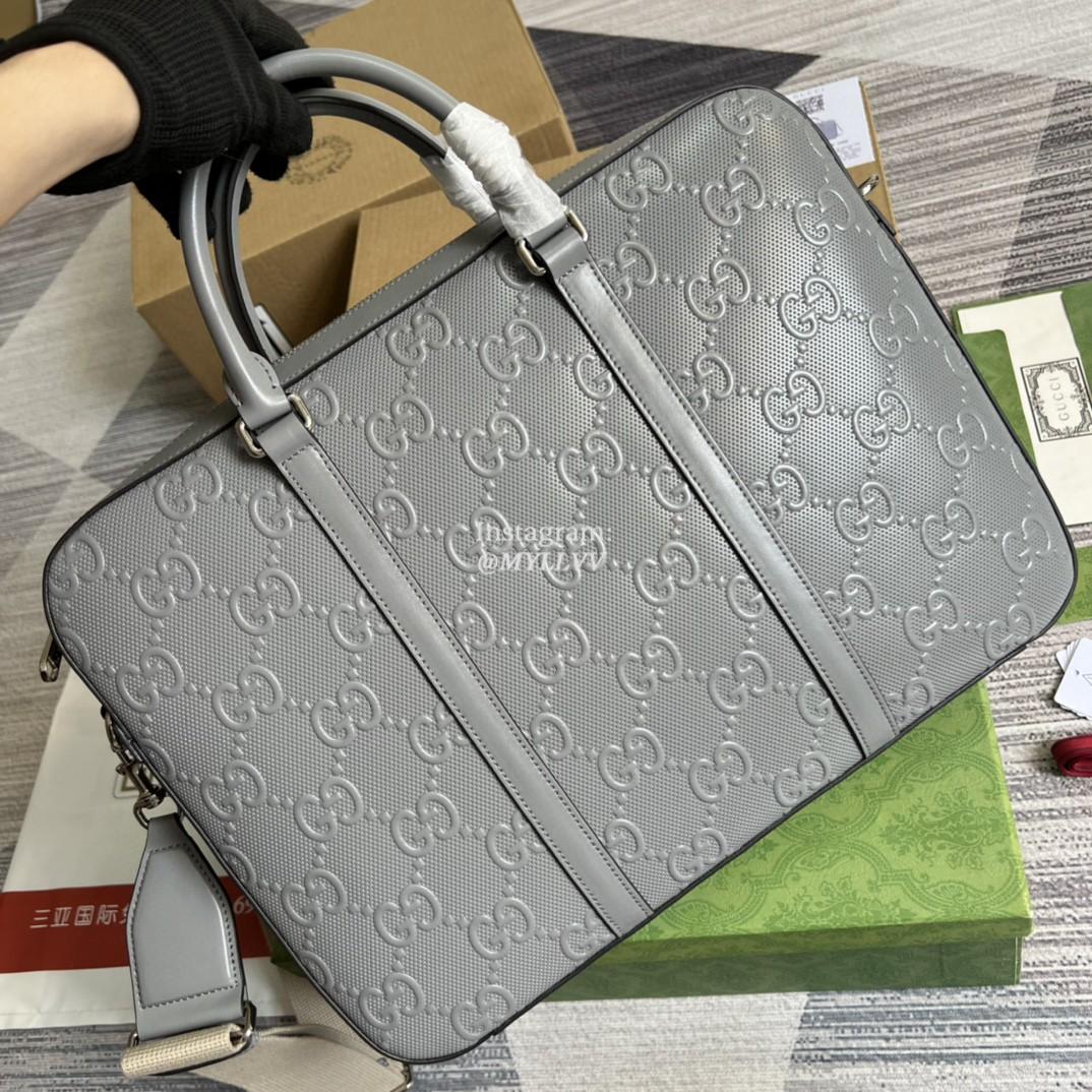 Top Quality Version:MYLLVV » Gucci Grey GG Embossed Leather GG Embossed Briefcase 658573