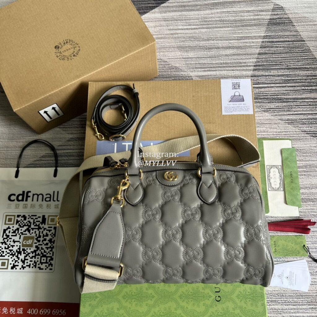 Top Quality Version:MYLLVV » Gucci Grey GG Matelassé Leather Medium Bag 702242