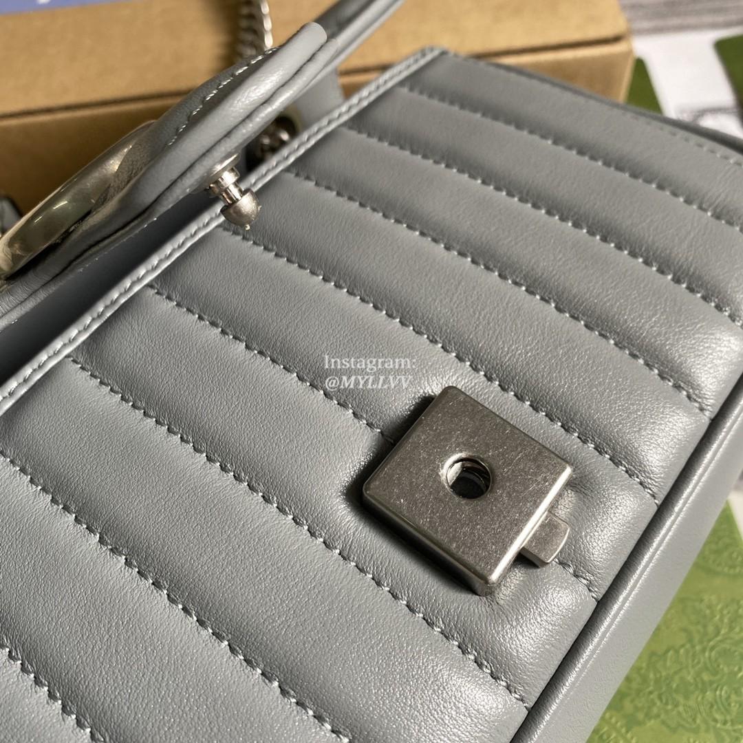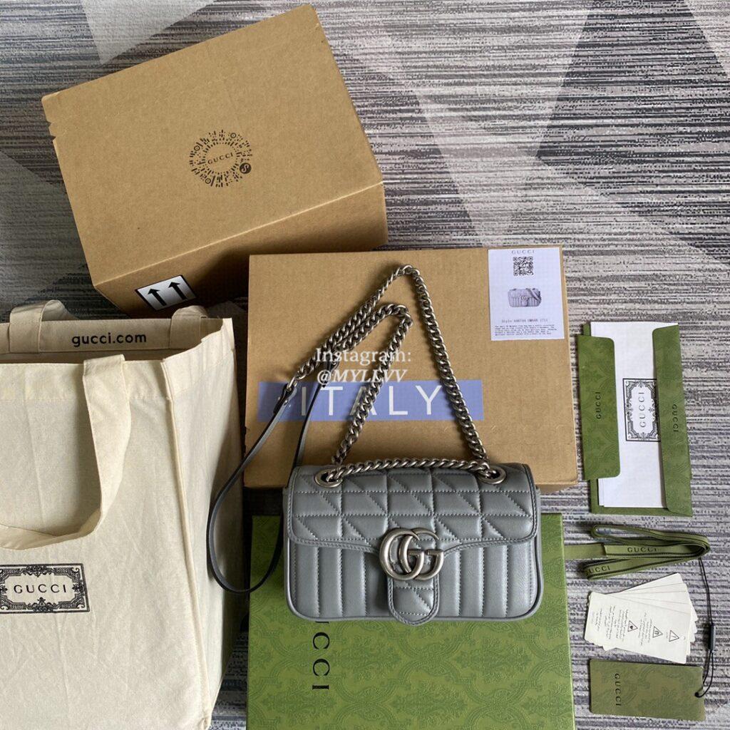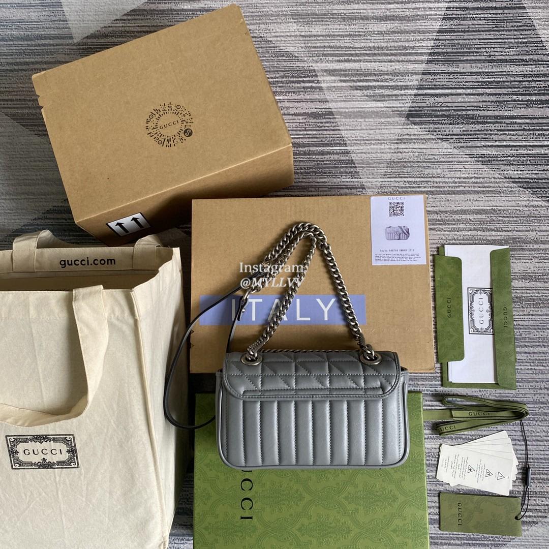 Top Quality Version:MYLLVV » Gucci Grey Matelassé Leather GG Marmont Mini Shoulder Bag 446744