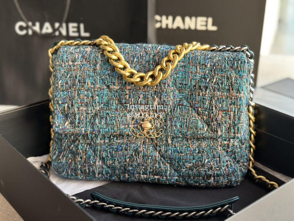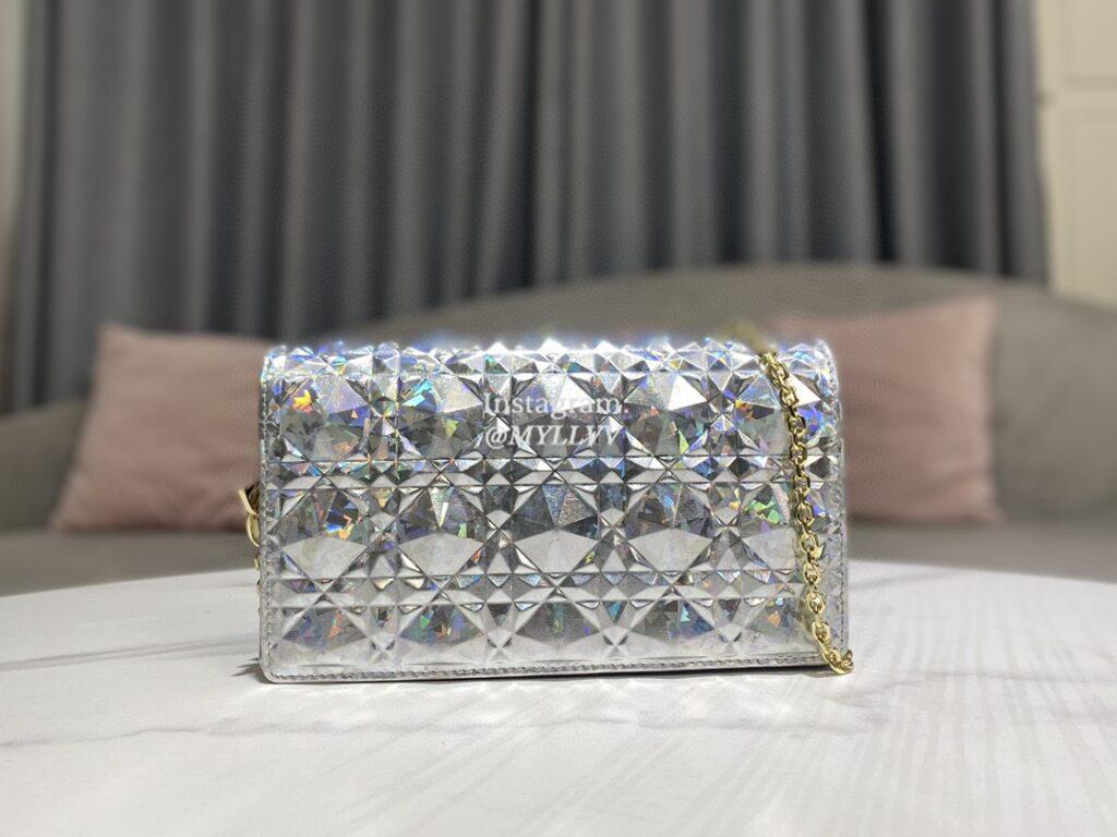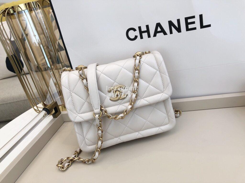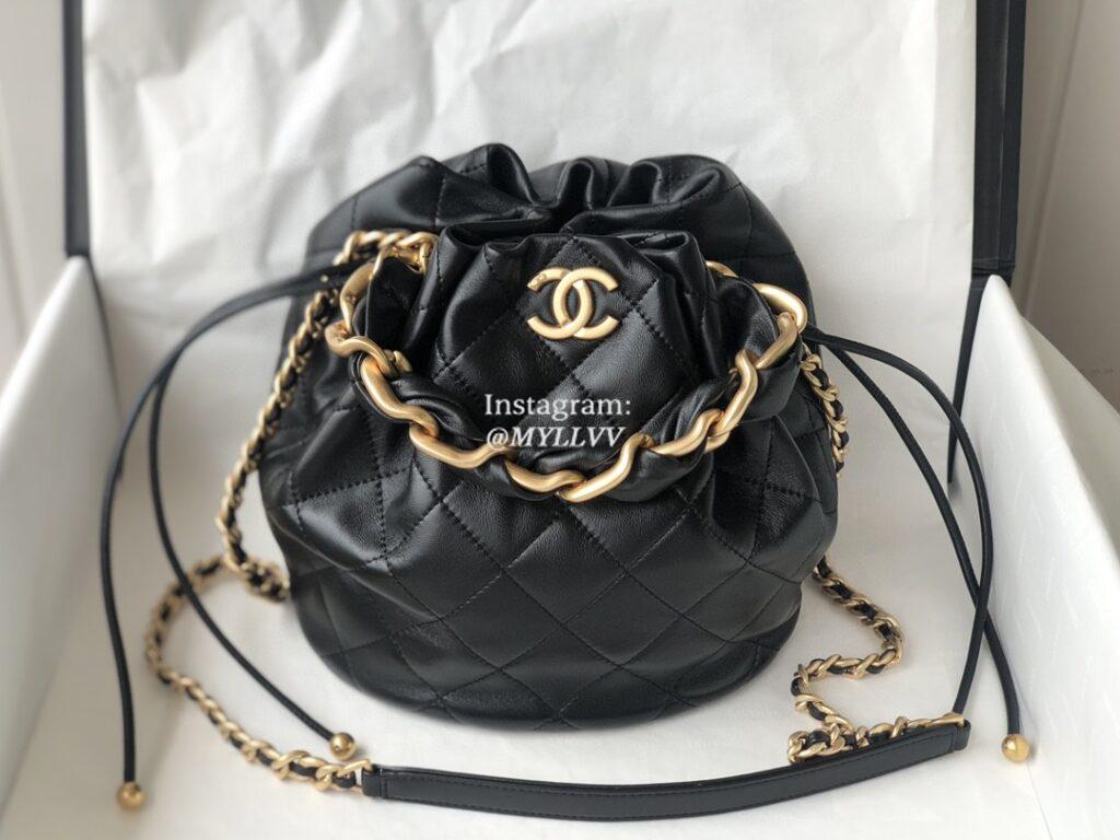 Each handbag comes with a storage pouch with two additional button caps, which can be used to cover exposed decorative buttons when the shoulder straps are stretched