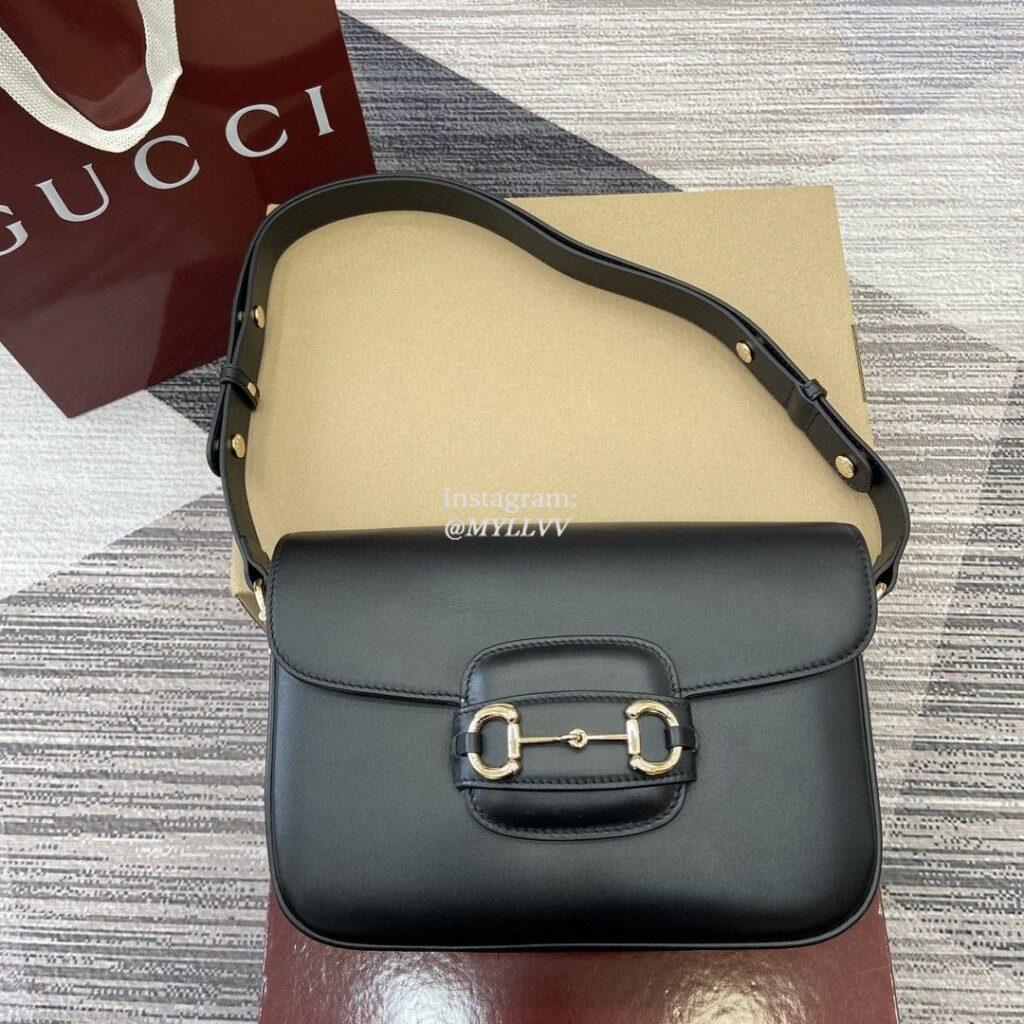 Top Quality Version:MYLLVV » Gucci Horsebit 1955 Series Soft Medium Shoulder Bag Black 815178