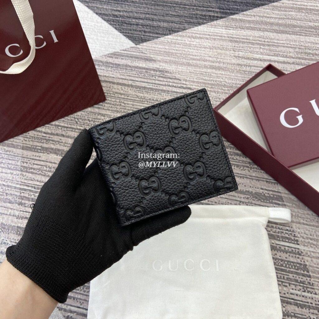 Top Quality Version:MYLLVV » Gucci Imprint Series Double Fold Wallet Black 835001
