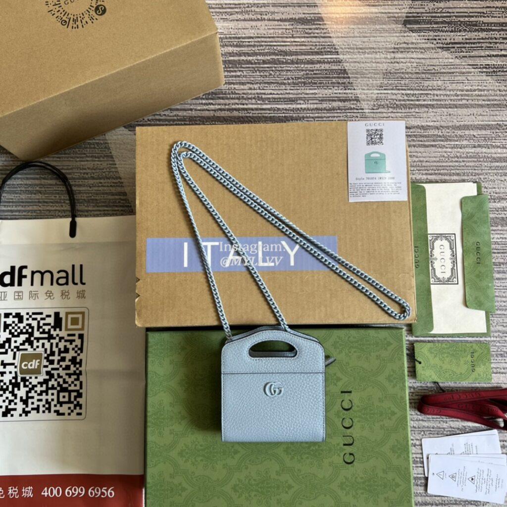 Top Quality Version:MYLLVV » Gucci Light Blue Leather GG Marmont Top Handle Card Case Wallet 701074