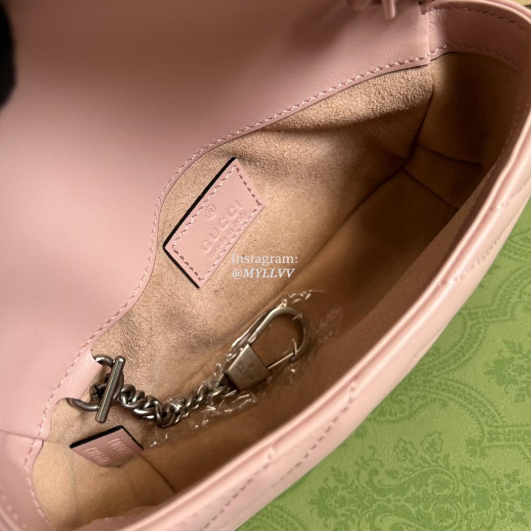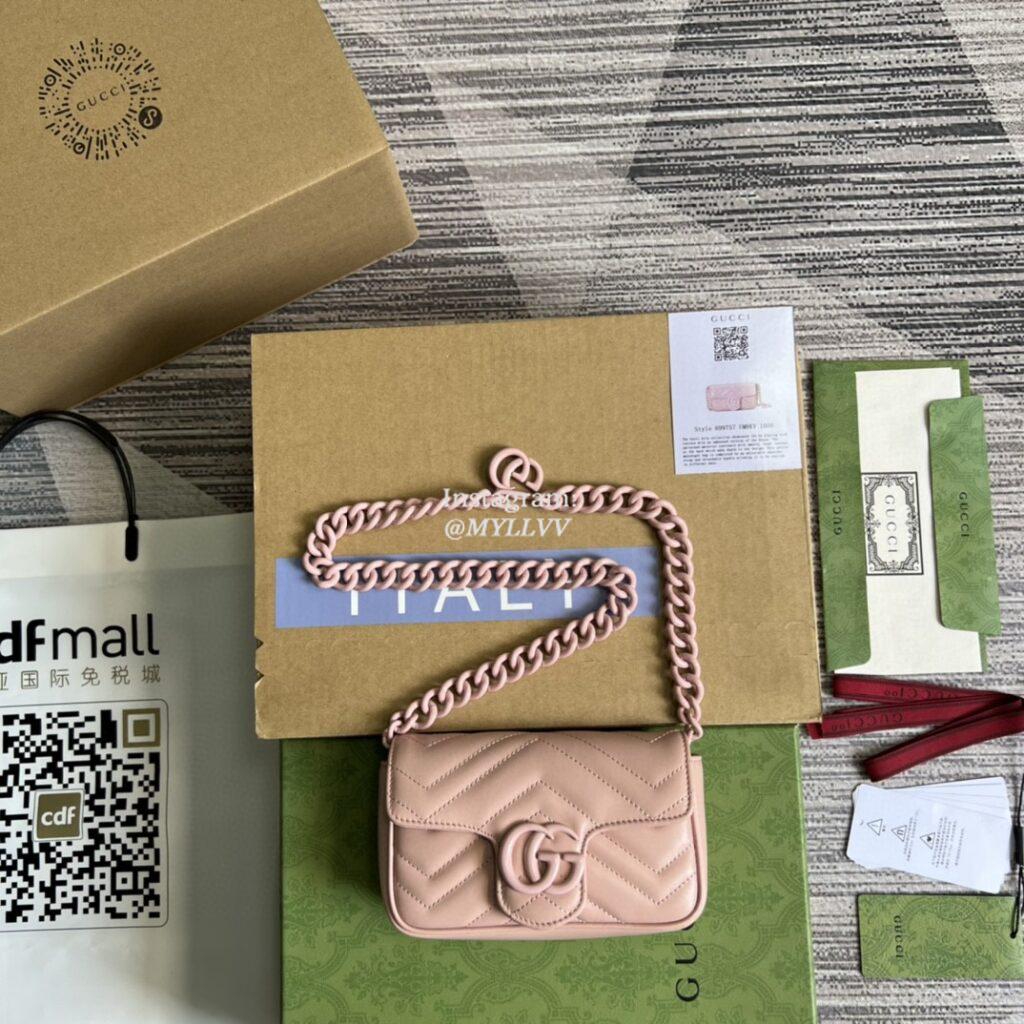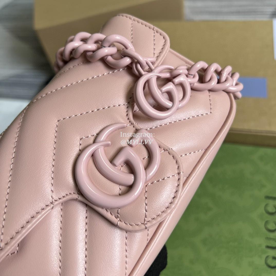 Top Quality Version:MYLLVV » Gucci Light Pink Chevron Matelassé Leather GG Marmont Belt Bag 699757
