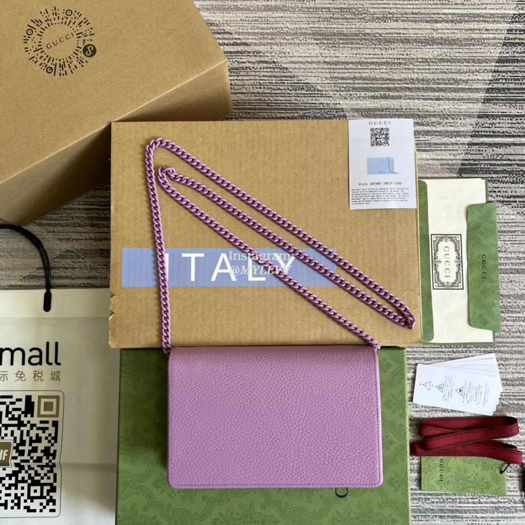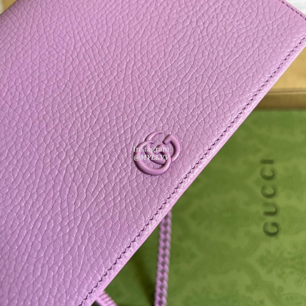 Top Quality Version:MYLLVV » Gucci Light Purple Leather GG Marmont Leather Mini Chain Bag 497985