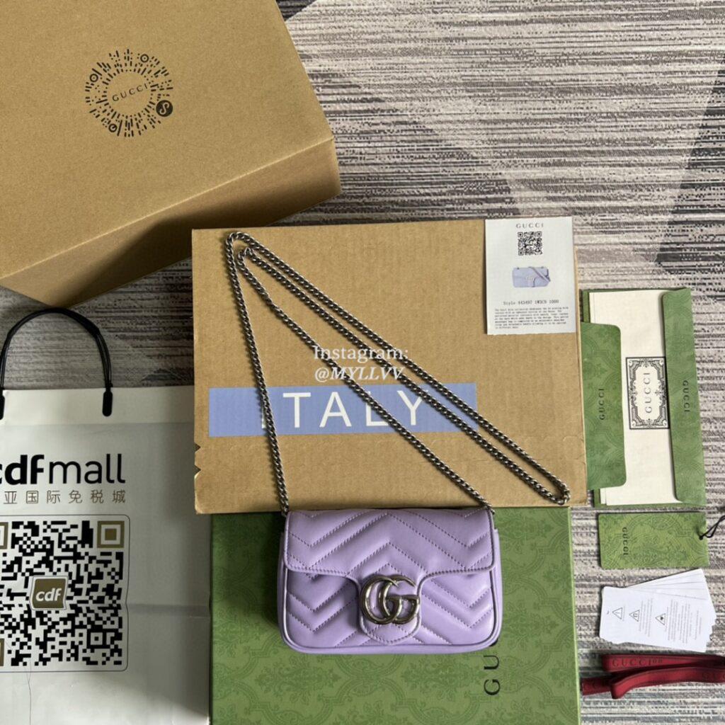Top Quality Version:MYLLVV » Gucci Lilac Matelassé Chevron Leather With Heart GG Marmont Matelassé Leather Super Mini Bag 476433