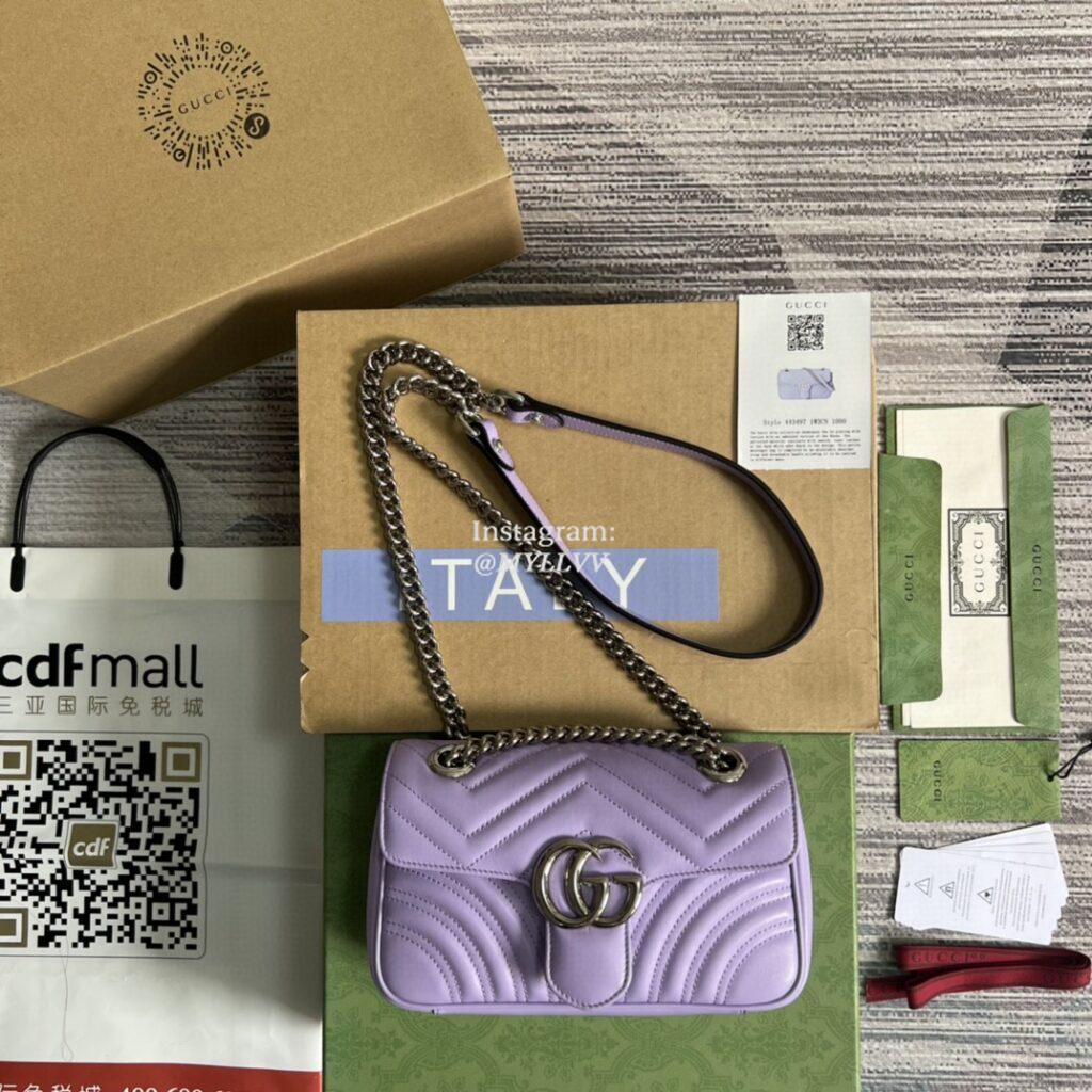 Top Quality Version:MYLLVV » Gucci Lilac Matelassé Chevron Leather With Heart GG Marmont Matelassé Mini Bag 446766
