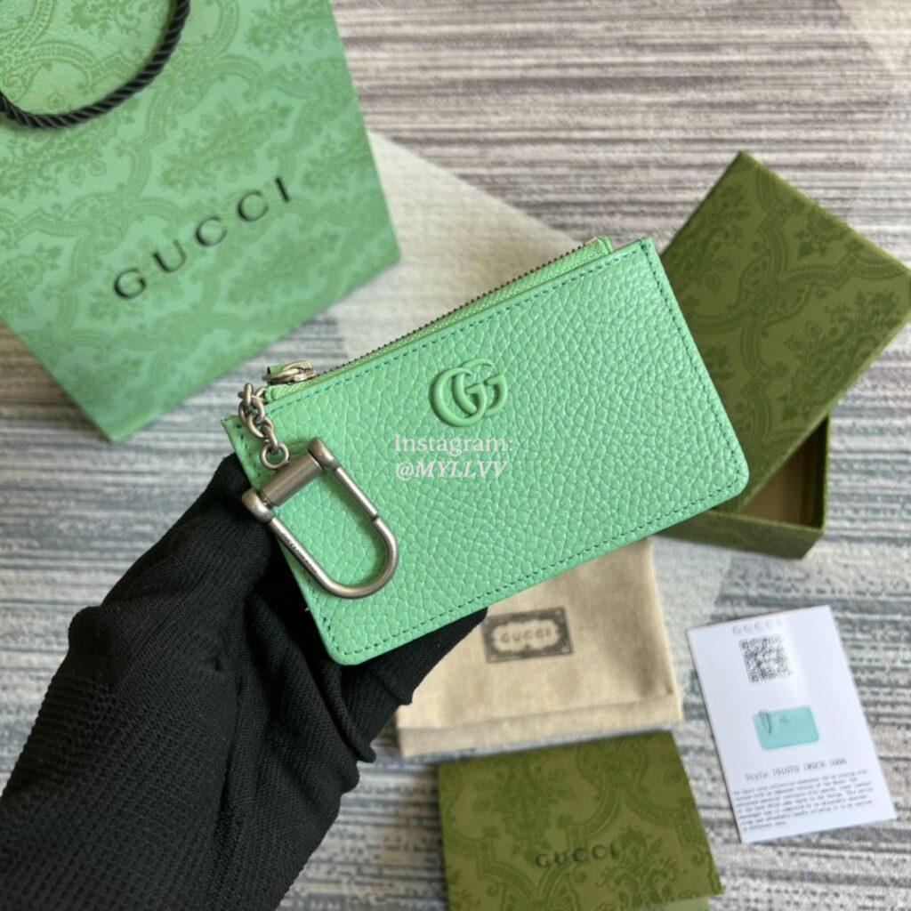 Top Quality Version:MYLLVV » Gucci Mint Green Leather GG Marmont Keychain Card Case 701070