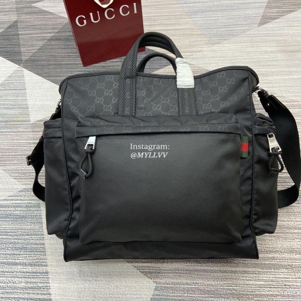 2025 Early Spring Men’s Bag Series, ingeniously integrating fashionable lines and sports style. This tote bag is crafted with soft and durable black nylon material, and the GG pattern throughout highlights the delicate base color. Other classic details include red and green ribbon details.