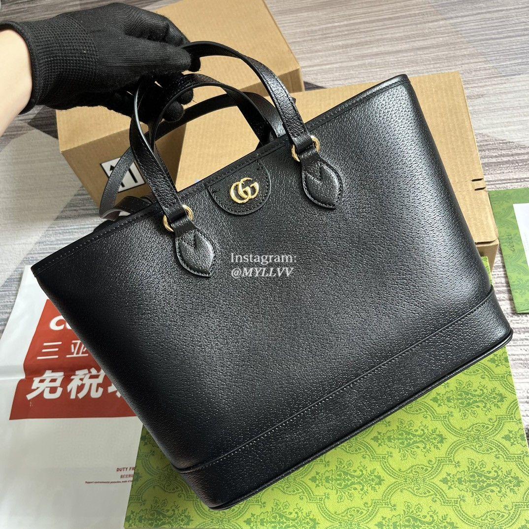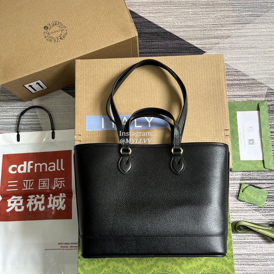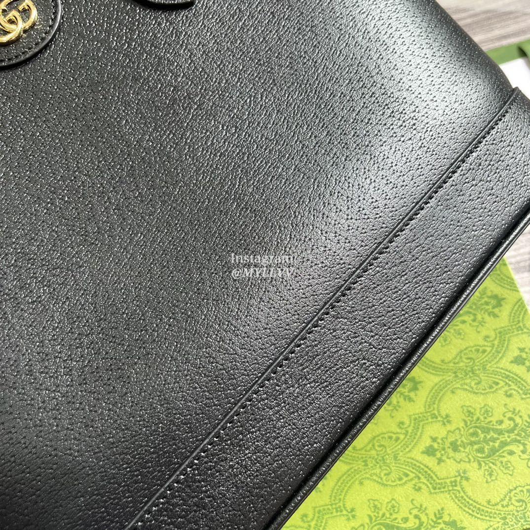 The Ophidia series is reinterpreted with new sizes and styles, integrating the handle and shoulder straps to create a variety of flexible carrying experiences. This tote bag is made of black leather craftsmanship, and the iconic double-G accessory adds charm to the overall look.