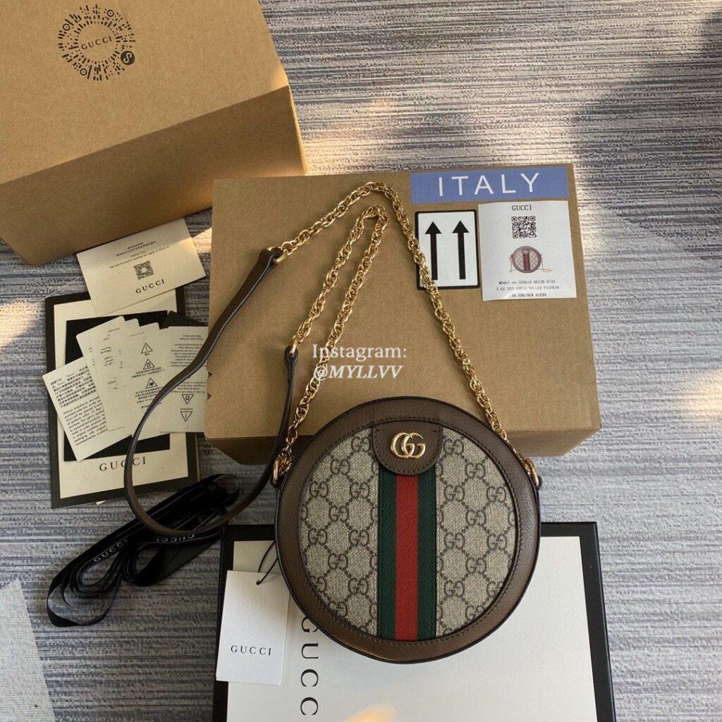 Gucci Ophidia Series GG Round Cake Bag Brown 550618