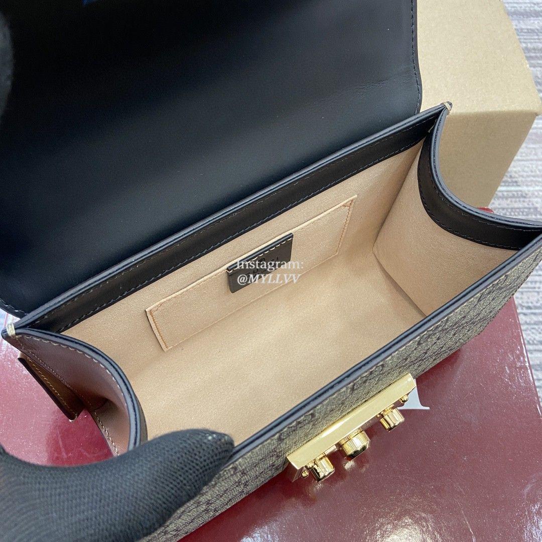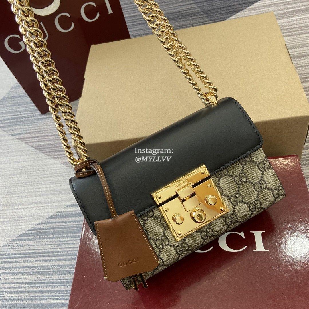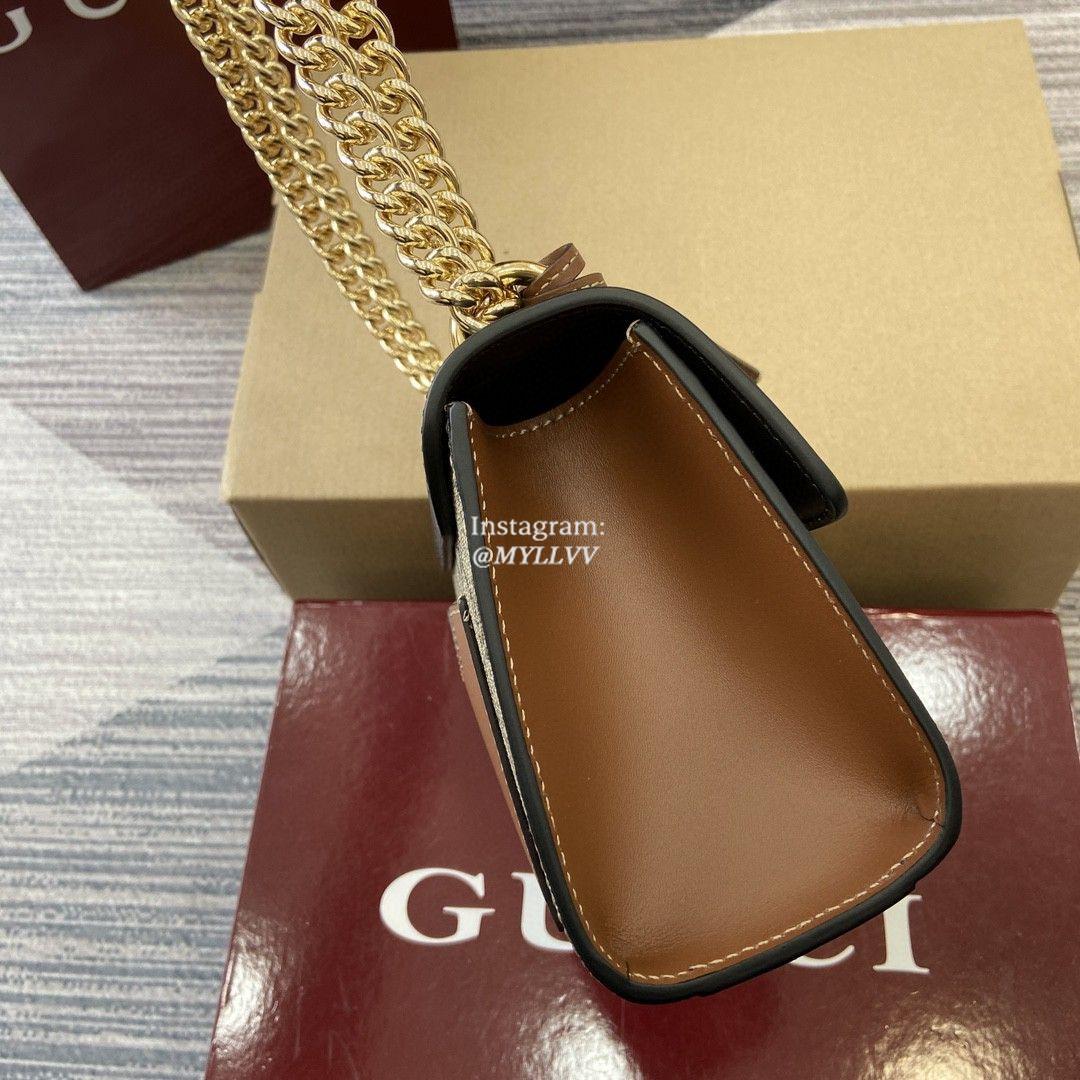 This small GG Supreme canvas shoulder bag comes with a leather flip cover and key lock closure. The sliding chain bag can be worn in multiple ways, and can be worn on the shoulder or carried by hand.