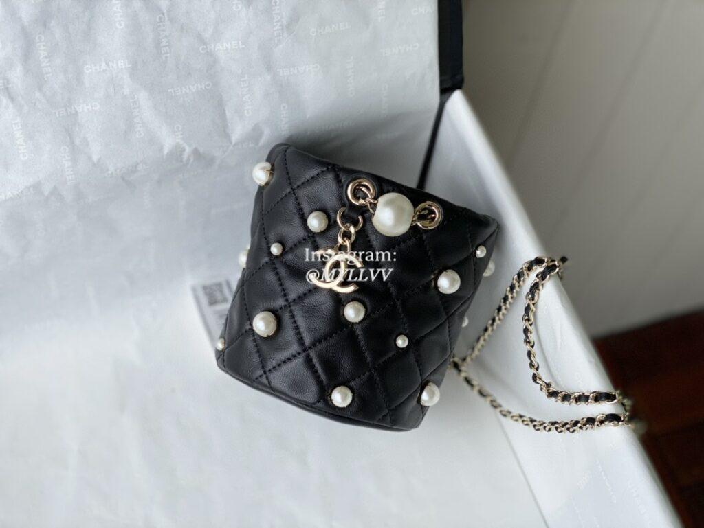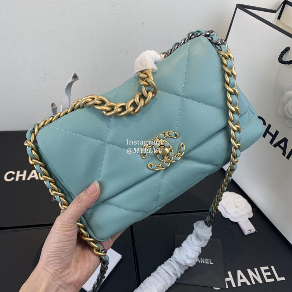 The sliding chain can be adjusted to a 50 centimeter high shoulder strap or a 28 centimeter high top handle.